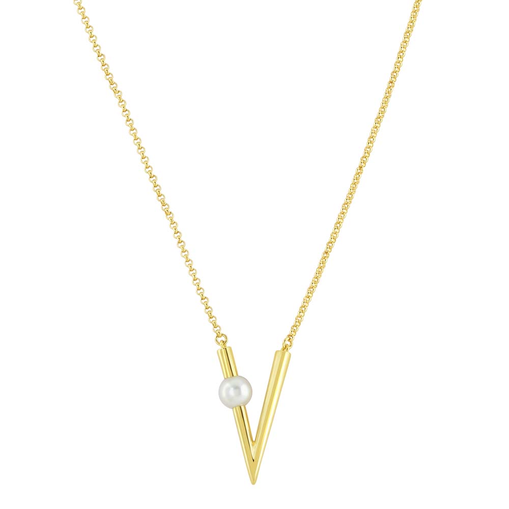 18ct Yellow Gold Akoya Cultured Pearl V Code Pendant