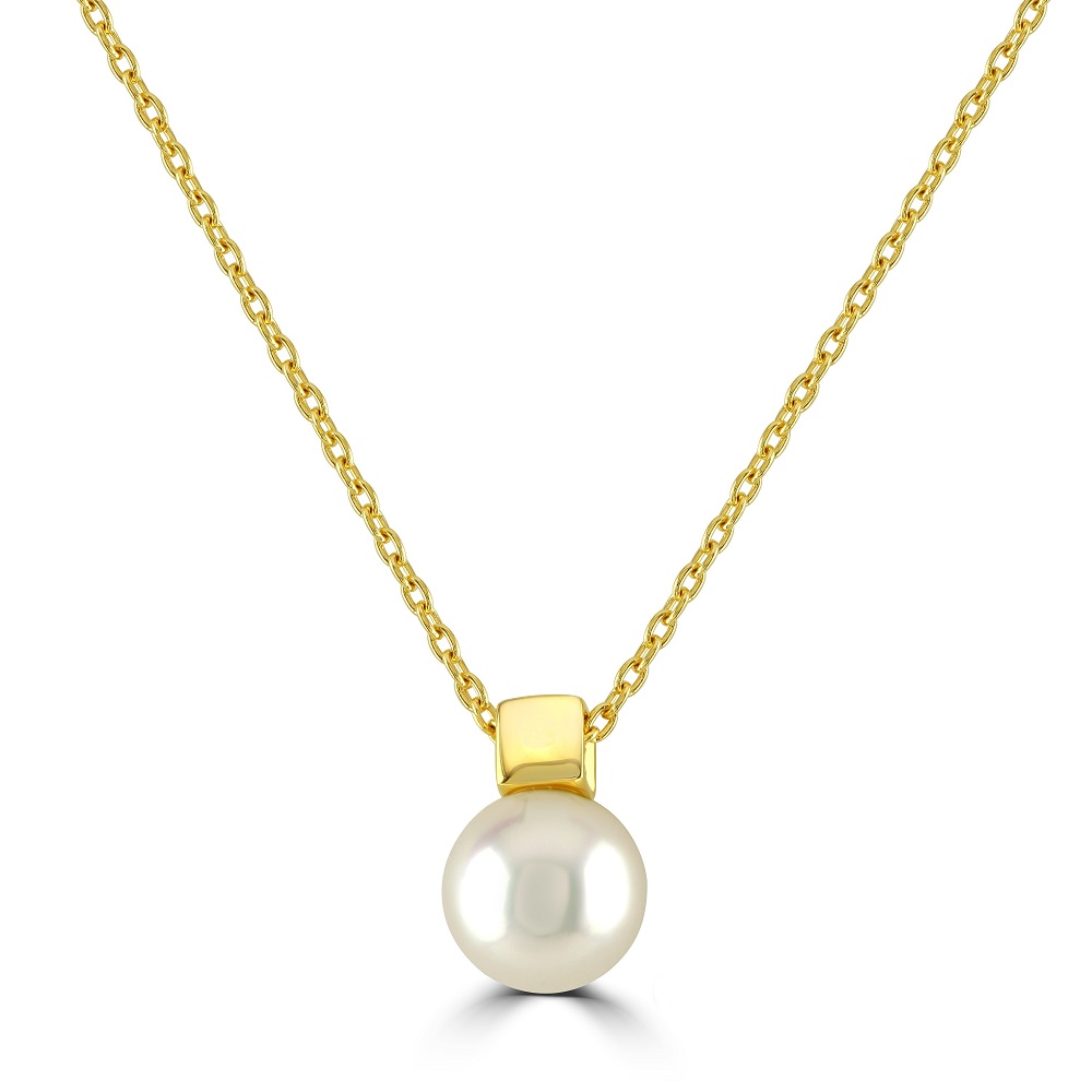 Introducing the Mikimoto 18ct yellow gold pendant, a masterpiece of refined elegance. This exquisite piece features a lustrous 7.00mm Akoya cultured pearl gracefully set beneath a striking square of 18ct yellow gold, exemplifying luxury and sophisticated design. The pendant hangs delicately from a 43cm yellow gold chain, perfectly positioned to catch the light and draw attention to the neckline. The combination of the pearl’s soft sheen and the gold’s warm glow offers a stunning contrast that is both classic and contemporary. Ideal for enhancing any wardrobe, this pendant is perfect for special occasions or as an everyday luxury. Its timeless design and the renowned Mikimoto quality make this piece a valuable addition to any jewellery collection, promising lasting beauty and style. Whether as a gift to cherish or a personal indulgence, this Mikimoto pearl pendant is sure to impress.