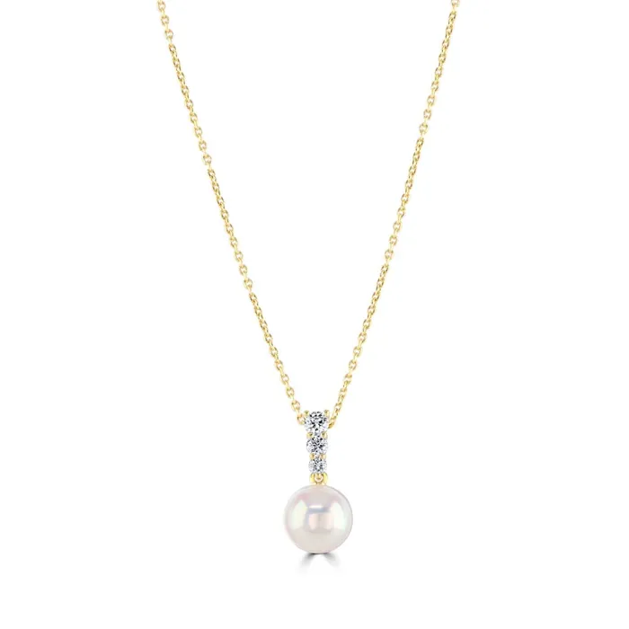 18ct Yellow Gold Akoya Cultured Pearl and Diamond Pendant