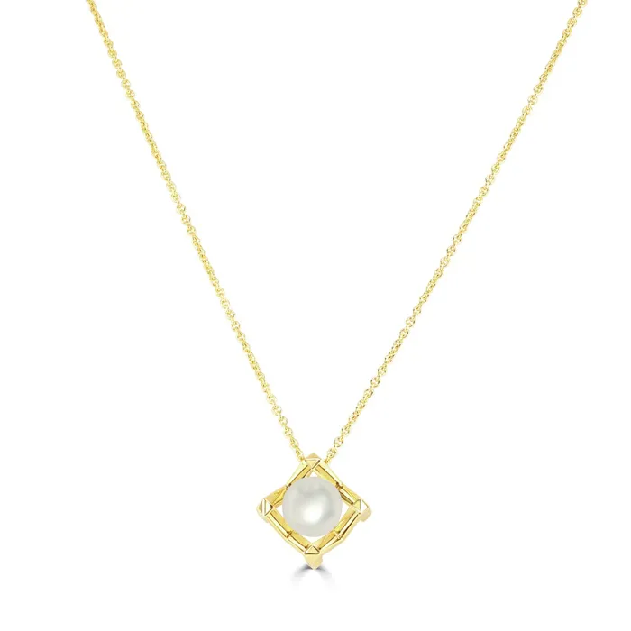 The epitome of modern elegance, an 18ct yellow gold pendant from the M Collection by Mikimoto, the leading name in the finest quality cultured pearls. This contemporary piece showcases a lustrous Akoya cultured pearl, perfectly cradled within an exquisite 'M' shaped surround, symbolizing both the Mikimoto brand and the modernity of its design. The pendant gracefully hangs from an 18ct yellow gold slider chain, offering a sleek and adjustable fit that complements any neckline. Crafted with the unparalleled craftsmanship and attention to detail that Mikimoto is renowned for, this pendant embodies the fusion of traditional luxury and contemporary design.