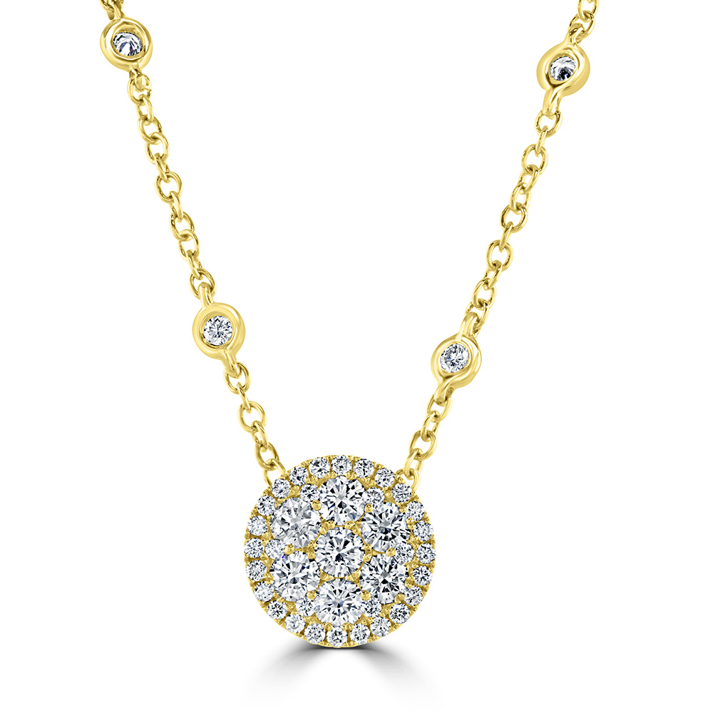 Introduce a touch of elegance to your jewellery collection with our 18ct yellow gold pendant, an exquisite piece that combines classic allure with contemporary design. This stunning pendant showcases a fully-set circle of round brilliant cut diamonds, totalling 0.90 carats, which radiate spectacular brilliance. The circle pendant gracefully slides along a luxurious 16-inch trace chain, which is further enhanced with 12 scattered rubover set diamonds, adding an element of surprise and additional sparkle to this sophisticated piece. Crafted from lustrous 18ct yellow gold, this pendant provides a warm, rich backdrop that perfectly complements the dazzling diamonds. Ideal for special occasions or as an eye-catching addition to everyday wear, this slider pendant is a timeless investment that epitomizes luxury and style.