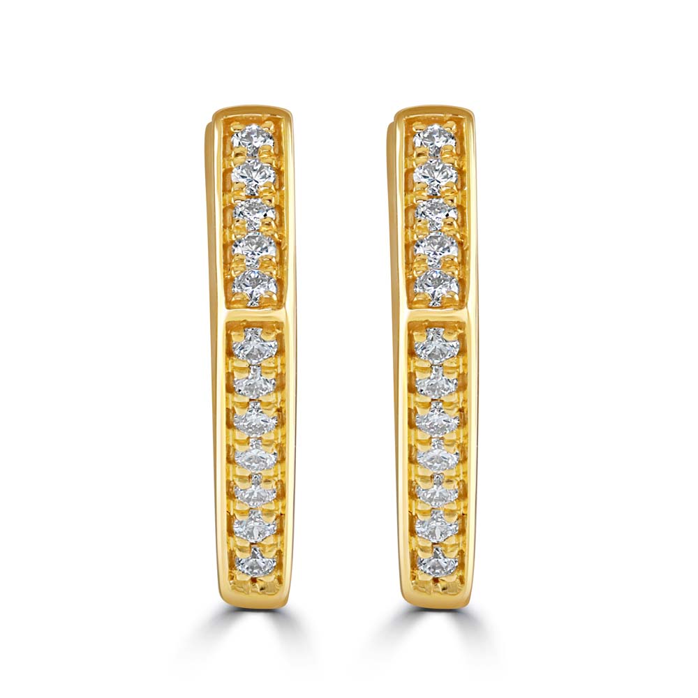 Add a touch of elegance to your jewelry collection with these stunning 18ct yellow gold hinged hoop earrings. Each earring features a unique square shape, adorned with 12 round brilliant-cut diamonds cascading gracefully down the front two sides. The total diamond weight for both earrings is 0.15ct, offering a subtle yet captivating sparkle. The warm, rich hue of the yellow gold beautifully complements the brilliance of the diamonds, creating a timeless and sophisticated look. The hinged design ensures a secure and comfortable fit, making these earrings perfect for both everyday wear and special occasions. Whether you're dressing up for a formal event or adding a touch of luxury to your daily attire, these earrings are the perfect accessory to enhance any outfit.