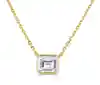 A luxurious 18ct Yellow Gold Pendant, elegantly showcasing a 1.39ct emerald cut diamond in a refined rubover setting. This masterpiece of jewellery design blends timeless elegance with contemporary style, making it a stunning focal point of any ensemble. Crafted from the finest 18ct yellow gold, the pendant hangs gracefully on an integrated 19-inch trace chain, also made of 18ct yellow gold, providing a seamless look of sophistication and charm. The emerald cut diamond, known for its precision and clarity, captures and reflects light beautifully, offering a spectacle of brilliance and depth.