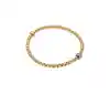 An 18ct yellow gold Flex'It Eka bracelet by Fope featuring a full sparkling pavé diamond set 18ct white gold rotatable rondel. This elegant woven bracelet beautifully forms around the wrist as there are 18ct gold springs hidden within the links. Due to the brilliant design the bracelet can be simply rolled onto the wrist thus negating the need for a clasp. Fope bracelets look great when layered with other pieces from the range. Fope Gioielli is a family owned company producing stunning and exclusive pieces from Vicenza, Italy. Other sizes and variations are available please contact the store for more details.