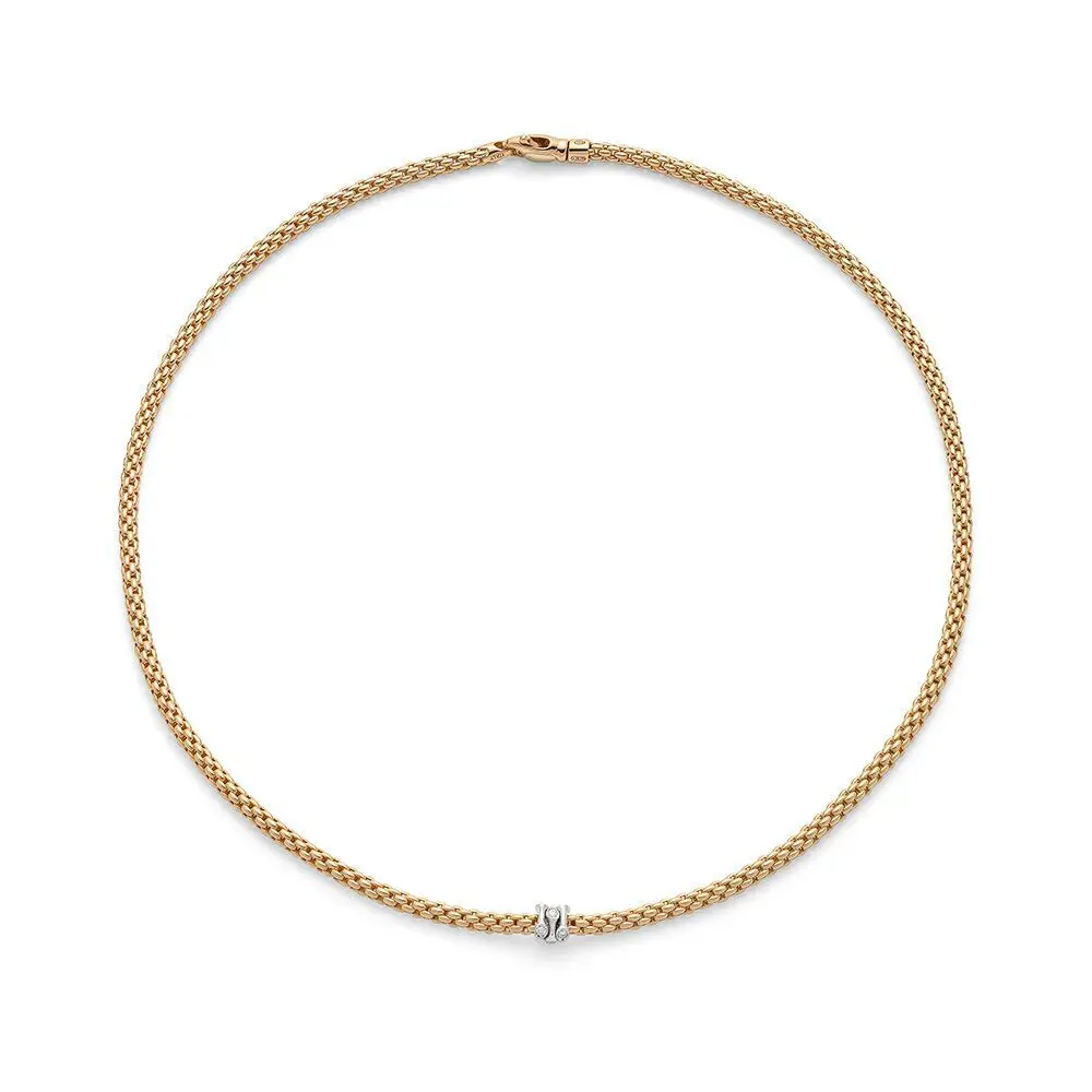 The soft and flexible weave of the gold round Novecento mesh is in a light and relaxed form within the Prima collection. Prima bracelets, rings, necklaces and earrings can be worn on their own or matched with more important pieces from other collections. A masterpiece of jewellery making and engineering at the same time, Flex’it is a patented system for producing jewellery that is entirely and uniquely flexible, comfortable and easy to wear, in 18-carat gold. Flex’it is the brand’s signature: if FOPE jewellery is known the world over, it is because of the mesh that is made flexible by a patented system of tiny 18-carat gold springs, which create original styles and fits.