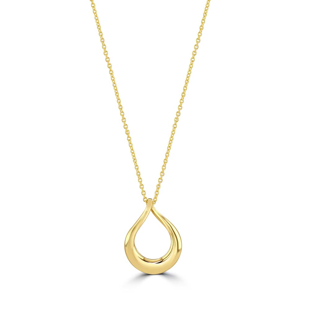 Enhance your elegance with this exquisite 18ct yellow gold pendant. Featuring a unique twisted open pear drop shape, this pendant is a perfect blend of modern design and timeless beauty. The pendant is suspended on an 18ct yellow gold trace chain, which is adjustable from 18 inches to 17 inches, allowing for versatile styling options. The warm, rich hue of the yellow gold adds a touch of luxury to any outfit, making this pendant ideal for both everyday wear and special occasions. Whether you're dressing up for a formal event or adding a touch of sophistication to your daily attire, this pendant is the perfect accessory to elevate your look.