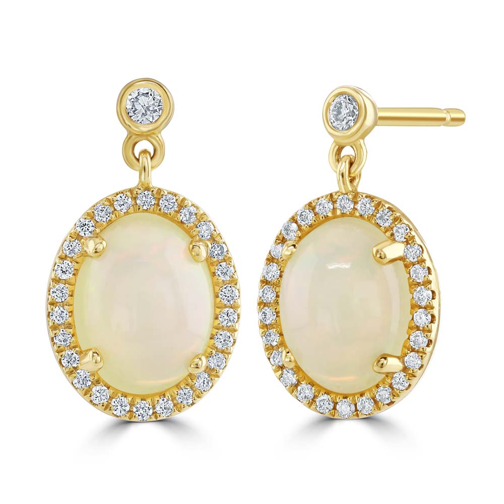 18ct Yellow Gold Opal and Diamond Halo Drop Earrings
