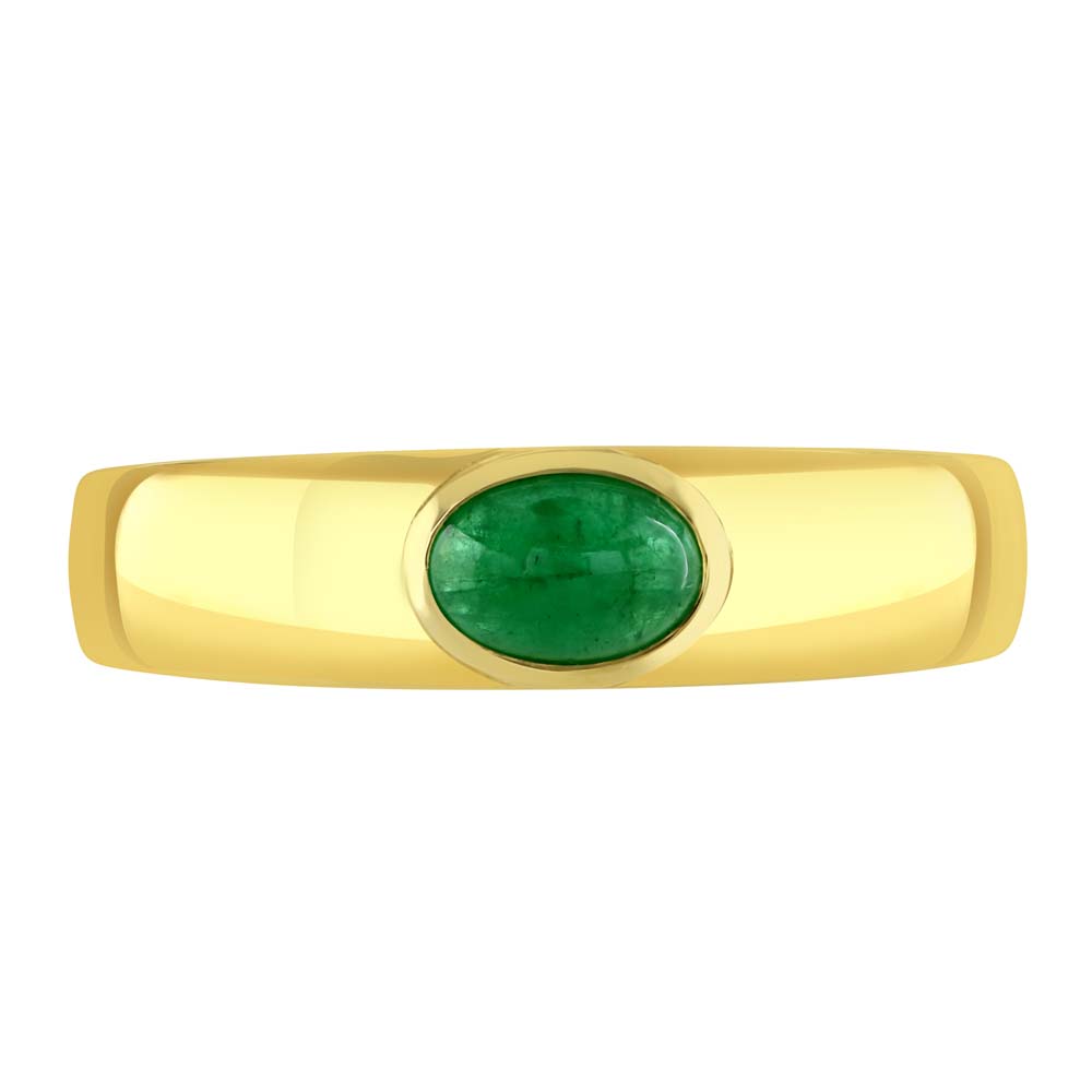 Discover the timeless elegance of our 18ct yellow gold solitaire ring, designed to captivate with its stunning simplicity and luxurious craftsmanship. This exquisite ring features a single cabochon cut oval emerald, securely set in a classic rubover setting. The emerald, weighing 0.43 carats, boasts a smooth, polished surface and a vibrant green hue, making it the perfect centrepiece for this elegant piece. Ideal for marking special occasions or adding a touch of sophistication to your jewellery collection, this 18ct yellow gold solitaire ring combines timeless design with exceptional quality. The rich yellow gold band beautifully complements the vivid green of the emerald, creating a piece that symbolizes enduring love and elegance. The cabochon cut of the emerald adds a unique and contemporary twist to the traditional solitaire design, ensuring that the ring stands out in any setting. The smooth, rounded surface of the cabochon cut allows the emerald's natural beauty and depth of colour to shine through, making it a captivating focal point. Perfect for both everyday wear and special occasions, this ring is a versatile addition to any jewellery collection. Whether worn alone or paired with other fine pieces, it exudes an air of sophistication and timeless charm.