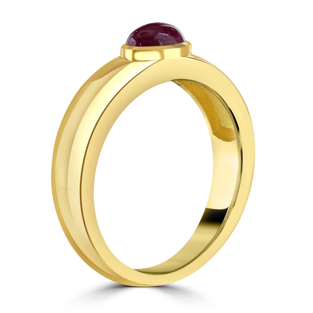 Discover the timeless elegance of our 18ct yellow gold solitaire ring, meticulously designed to feature a stunning single cabochon cut oval ruby. The ruby, weighing 0.73 carats, is expertly rubover set, showcasing its rich, vibrant colour and smooth, polished surface. This elegant setting highlights the gemstone’s natural beauty, creating a piece that radiates sophistication and charm. Perfect for celebrating special occasions or adding a touch of luxury to your jewellery collection, this 18ct yellow gold solitaire ring combines classic design with exceptional craftsmanship. The warm yellow gold band beautifully complements the deep red ruby, creating a piece that symbolizes enduring love and elegance. The cabochon cut of the ruby adds a unique and contemporary twist to the traditional solitaire design, making this ring a standout piece. Whether worn alone or paired with other fine jewellery, this ring is versatile enough for both everyday wear and special occasions, making it a cherished addition to any collection.
