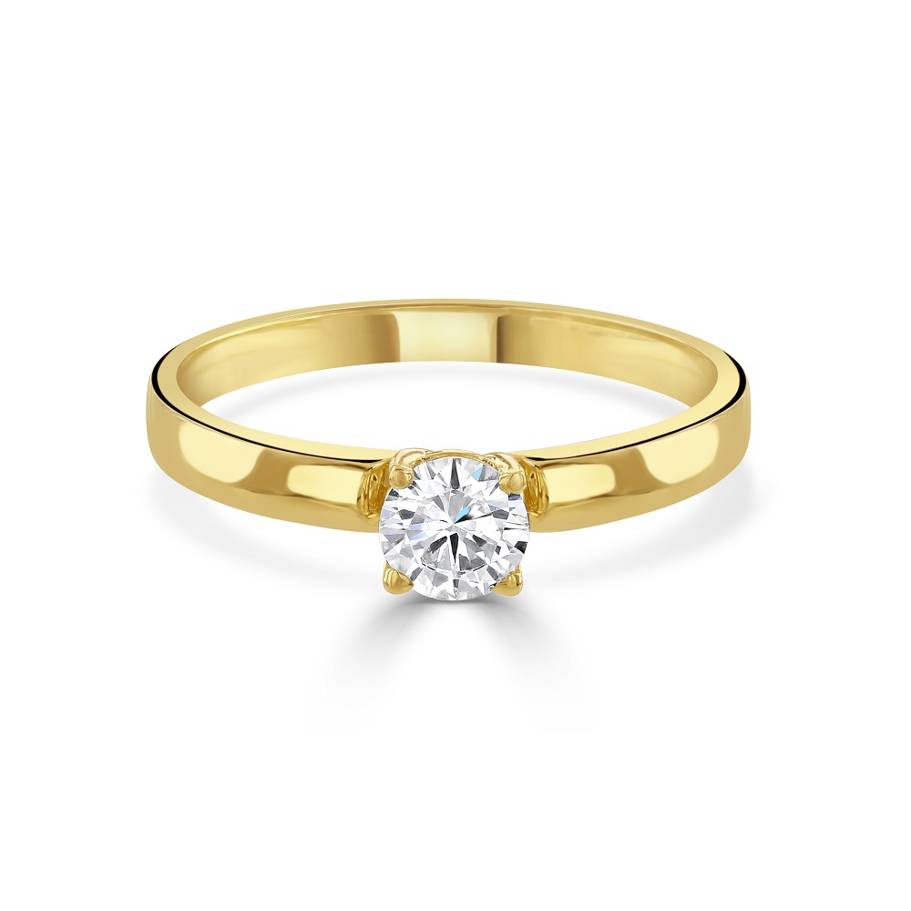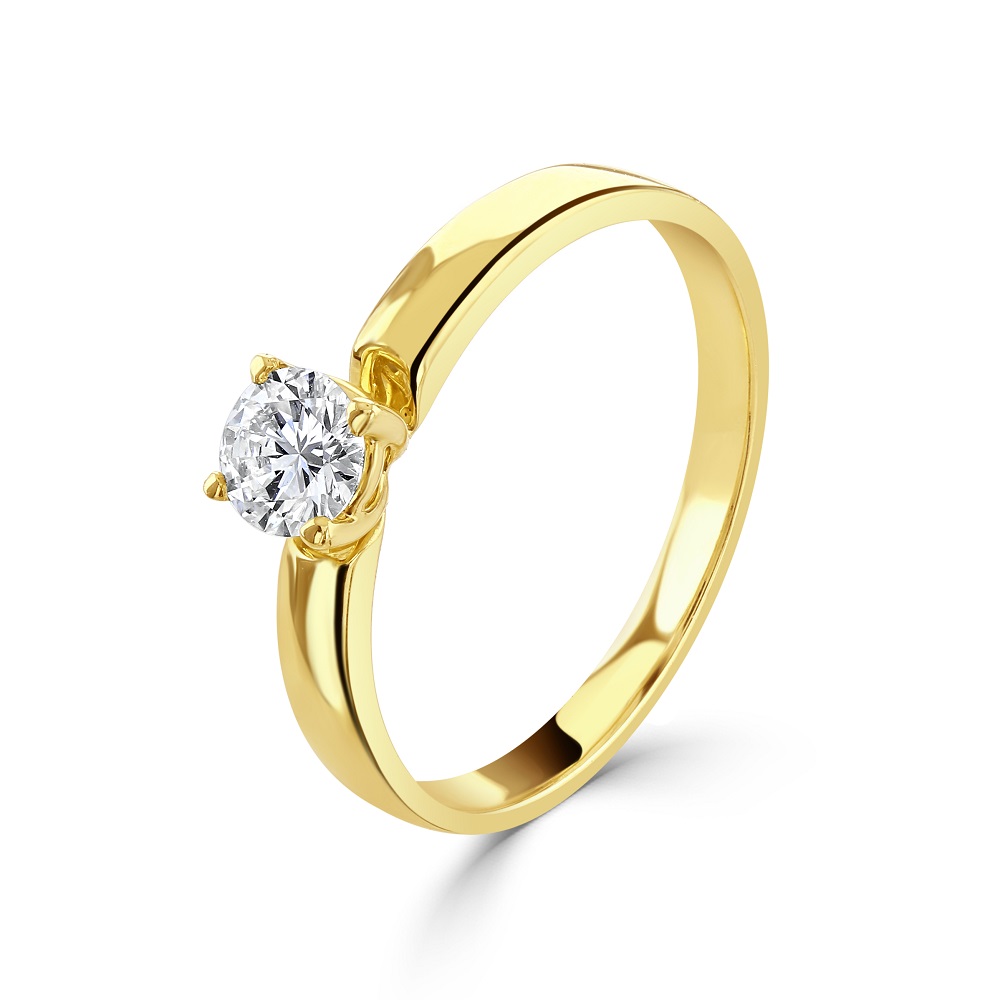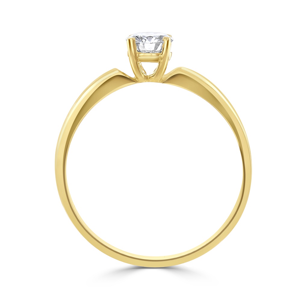 A timeless and elegant 18ct yellow gold solitaire ring, an exquisite piece that combines classic charm with a touch of modern sophistication. This luxurious ring features a stunning round brilliant-cut diamond, securely held by four claws to maximize its sparkle and brilliance. The diamond weighs 0.32 carats and is perfectly showcased atop a beautifully crafted yellow gold band. Enhancing the ring's unique design are intricate cut-outs on the shoulders, adding an artistic flair and allowing more light to reach the diamond, thus intensifying its radiance. The warm hue of the 18ct yellow gold complements the clear, sparkling diamond, creating a harmonious and captivating look. Ideal for engagements, anniversaries, or as a special gift, this single stone ring is a testament to enduring style and quality craftsmanship. Its refined design and attention to detail make it a standout piece that is sure to be cherished for generations.