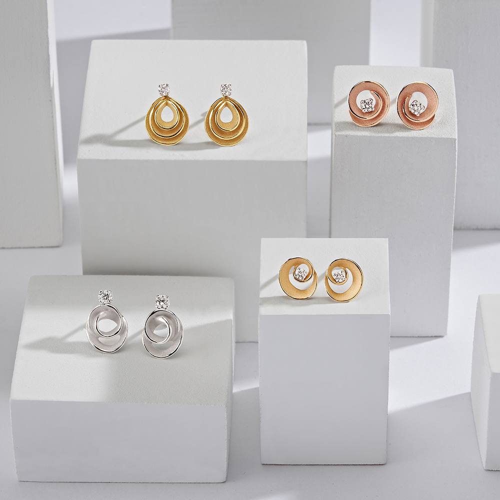 The extraordinary three-dimensionality of Velaa Star comes from the original interplay between the golden waves and the space that crosses them, in a succession of uncluttered lines that simplify the irregular features of Dune and amplify its volumes, maintaining the characteristic shiny and velvety finish. A single diamond placed in the center enhances the pleasant wavy geometry of this series.