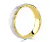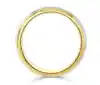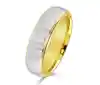 The central band is crafted from the finest platinum and features a modern satin finish that provides a subtle, matte appearance, offering a stylish alternative to the traditional glossy look. This sleek band is beautifully contrasted by the luxurious 18ct yellow gold edges, which are polished to a high shine and feature a bevelled design that catches the light, enhancing the ring’s visual appeal and adding a touch of elegance.