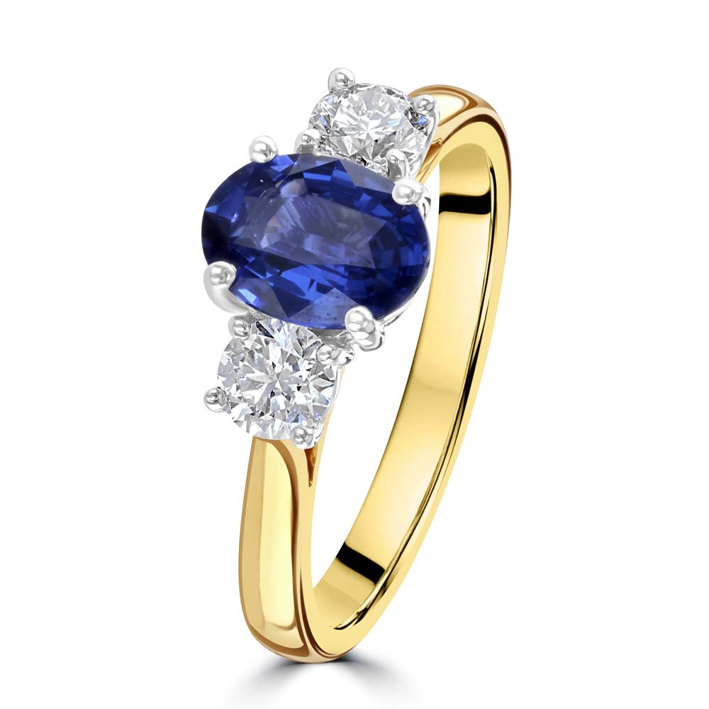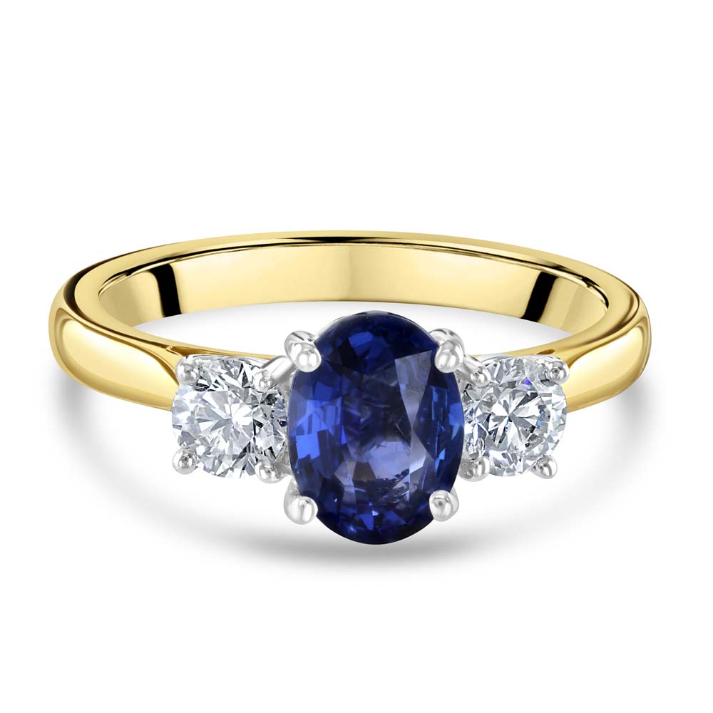 Classic elegance meets refined craftsmanship in this timeless trilogy ring, beautifully crafted in 18ct yellow and white gold. At its centre lies a 1.29 carat oval-cut sapphire, held in a secure four-claw setting, radiating a rich, velvety blue that captures the eye. On either side, a round brilliant-cut diamond is claw-set to enhance its natural fire and brilliance. With a combined diamond weight of 0.55 carats, and graded G colour, VS clarity, these stones offer exceptional sparkle and clarity, perfectly complementing the sapphire’s depth and hue. A sophisticated and meaningful piece, this ring is a celebration of love, legacy, and enduring beauty.