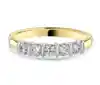 Our stunning 18ct yellow and white gold eternity ring is a symbol of everlasting elegance. This exquisite ring showcases a seamless blend of two precious metals, featuring alternating bands of rich yellow gold and lustrous white gold. This timeless design is complemented by five round brilliant-cut diamonds, each meticulously bar set to enhance their radiant sparkle.