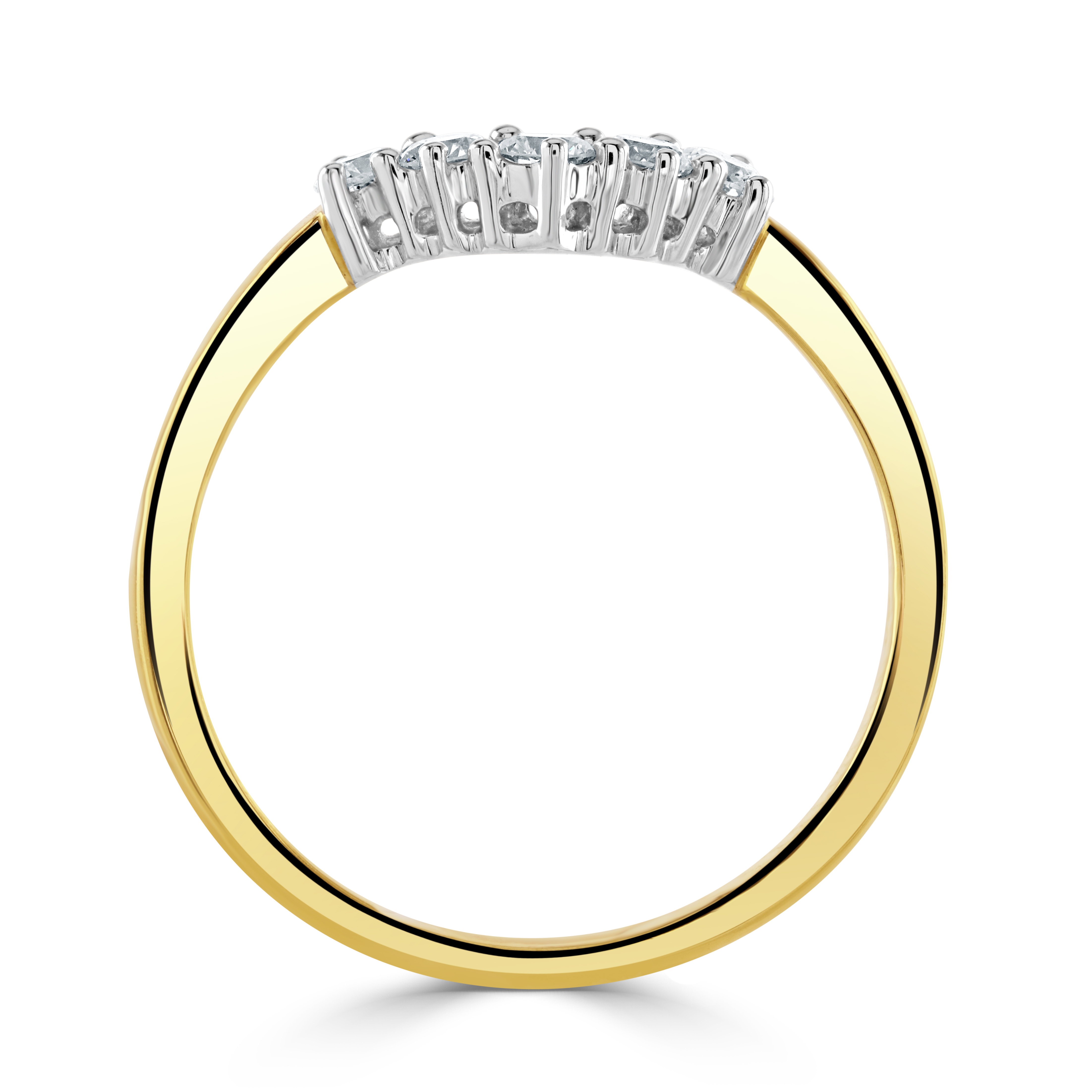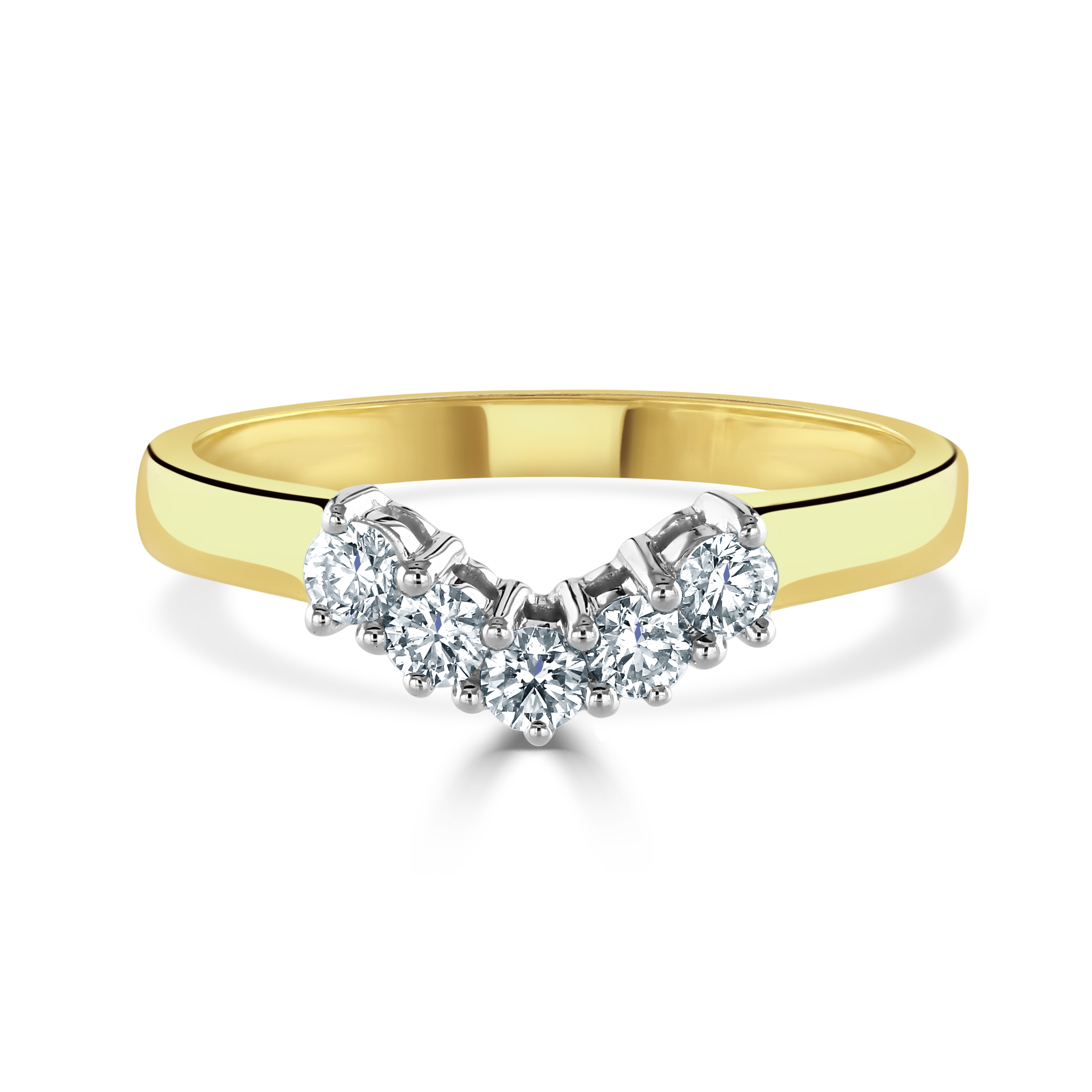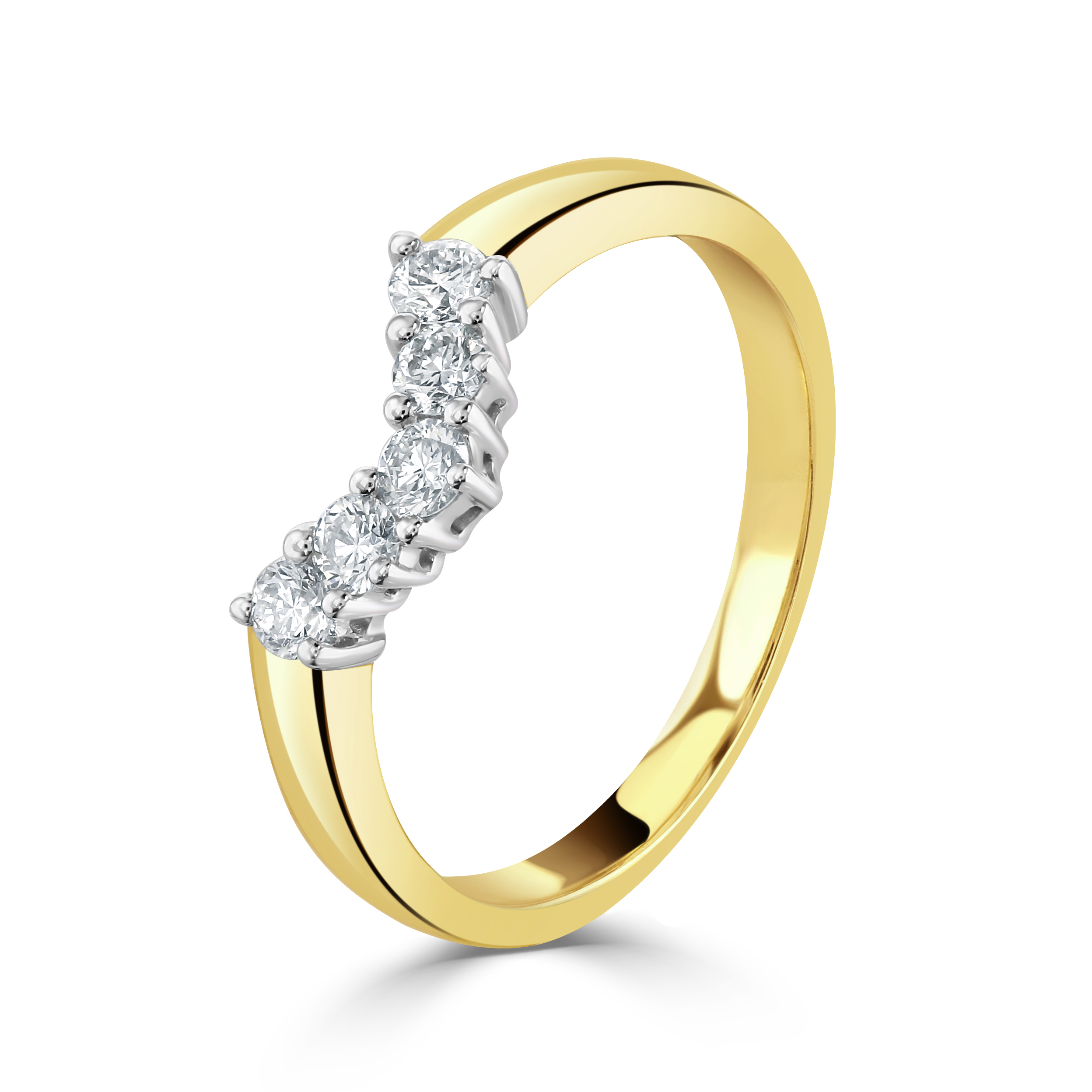 An 18ct yellow and white gold 'V' shaped ring claw set ring with five sparkling round brilliant cut diamonds. Other sizes and variations are available, please contact the store for more details.