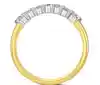 This sophisticated half eternity ring is beautifully crafted in a harmonious blend of 18ct yellow and white gold, creating a striking two-tone design. The gently curved band is adorned with seven round brilliant-cut diamonds, each securely held in a classic claw setting to maximise brilliance and light reflection. With an approximate total diamond weight of 0.70ct, these diamonds radiate exceptional sparkle, making this piece a perfect choice for marking life’s most meaningful moments. Its graceful curve allows for a seamless fit alongside an engagement ring or as a statement piece on its own.