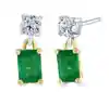 18ct Yellow and White Gold Emerald and Diamond Drop Earrings