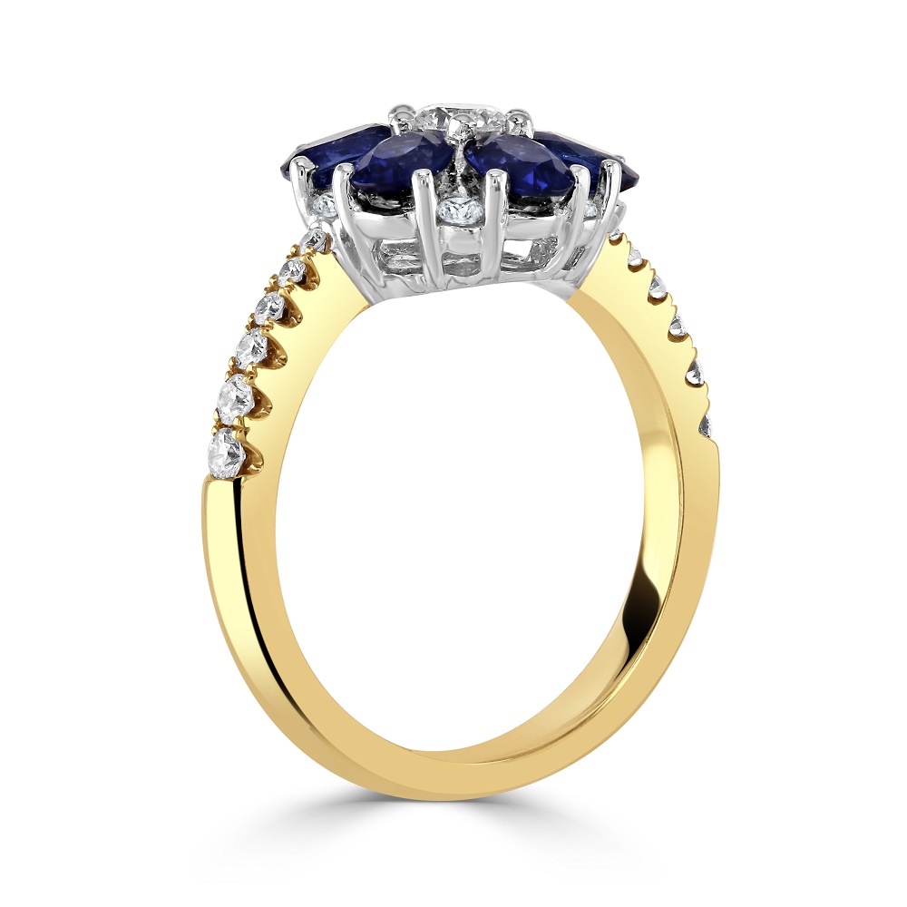 18ct Yellow and White Gold Sapphire and Diamond Flower Ring