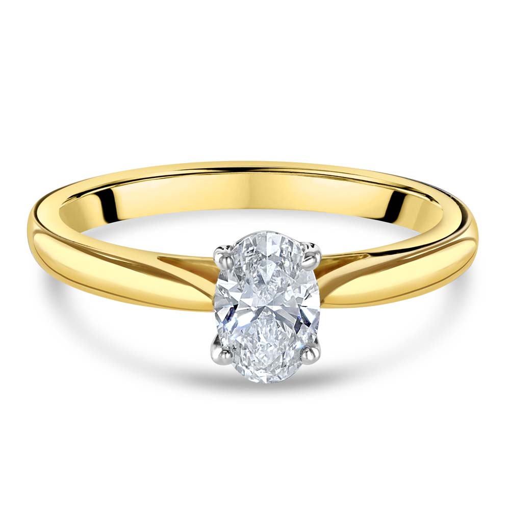 Celebrate a love as rare and radiant as this exquisite 18ct yellow and white gold solitaire ring, featuring a single oval-cut diamond — a symbol of individuality and elegance. Its graceful, elongated shape creates a timeless silhouette that flatters the hand while radiating brilliance and fire. The diamond is held in a graceful four-claw setting, allowing light to dance through every facet and illuminate its natural sparkle. Soft curves and harmonious proportions evoke a sense of grace, while the diamond’s pure brilliance captures the light. The union of yellow and white gold mirrors the harmony of two souls—distinct yet inseparable, creating a design that is both classic and contemporary.