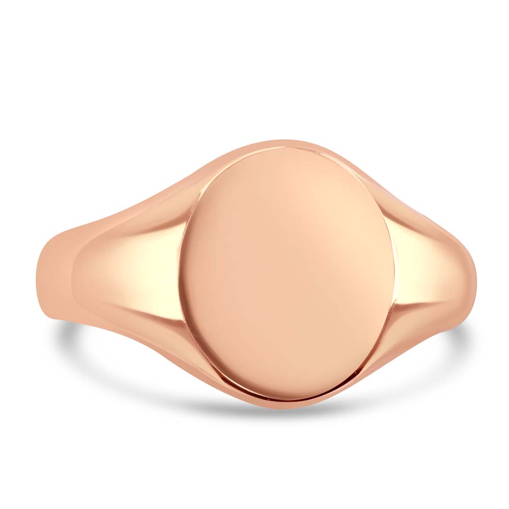 An exquisite 9ct rose gold oval signet ring, the perfect blend of classic elegance and personal expression. This meticulously crafted ring features a smooth, oval face, providing an ideal canvas for seal engraving with your cherished family crest or your initials. Crafted from premium 9ct rose gold, this signet ring embodies timeless beauty and durability, ensuring it can be worn and appreciated for generations to come. Its understated design makes it a versatile piece, suitable for everyday wear or special occasions, allowing you to carry a piece of your heritage or personal identity with you at all times. Whether you're looking to commemorate your family history or celebrate your individuality, this plain horizontal oval signet ring offers a unique opportunity to create a meaningful, custom piece that will be treasured forever.