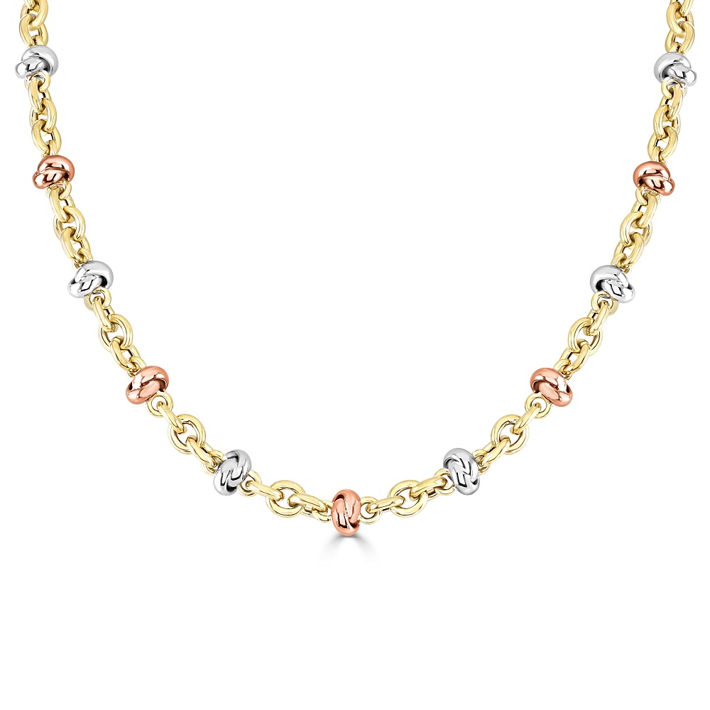 A beautiful 9ct yellow, white and rose gold interwoven chain necklet. Other variations are available, please contact the store for more details.