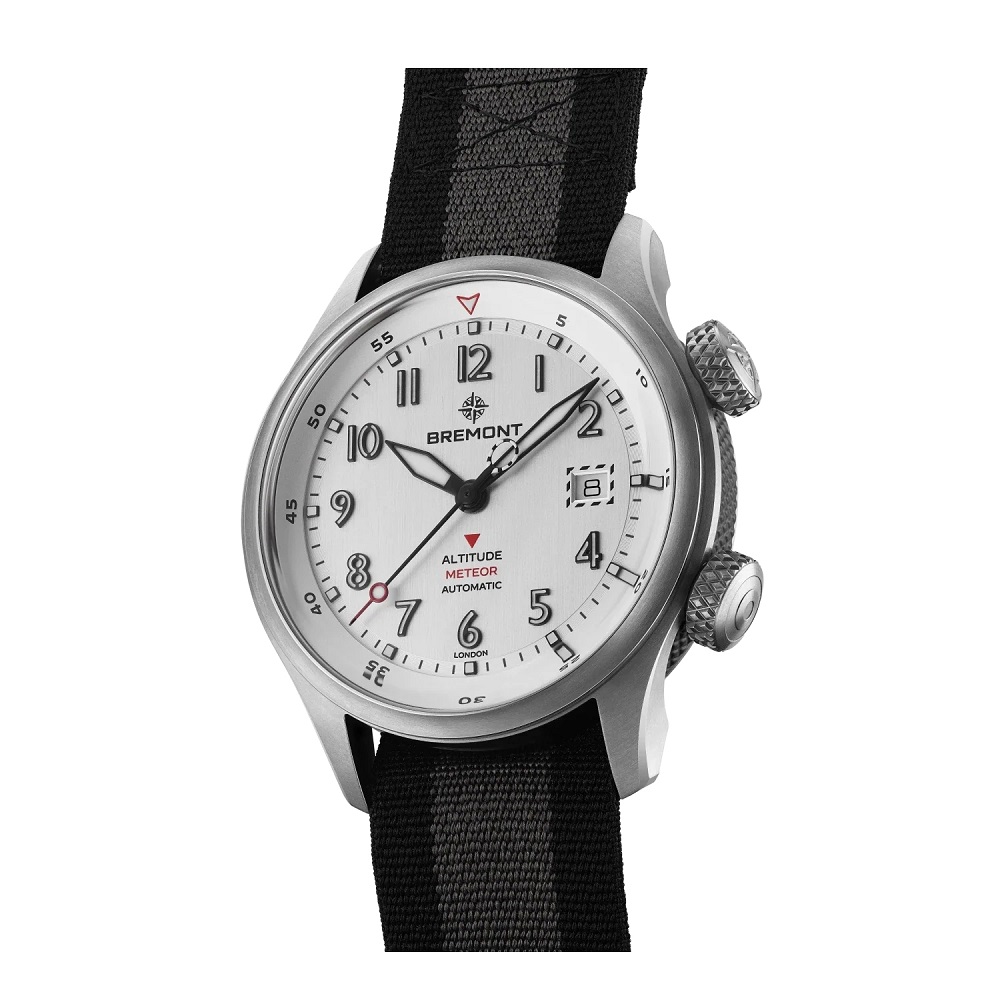 The Altitude MB Meteor is the most advanced evolution of Bremont’s iconic MB series. Named after the Gloster Meteor — Britain’s very first jet fighter, and the aircraft used for Martin-Baker’s original live ejection test in 1946 — it features a lightweight and durable 42mm Grade 2 titanium case, refined Trip-Tick construction, and an upgraded Roto-Click inner bezel. The Altitude MB Meteor is built for those who push limits.