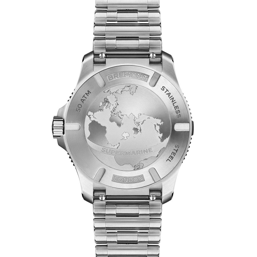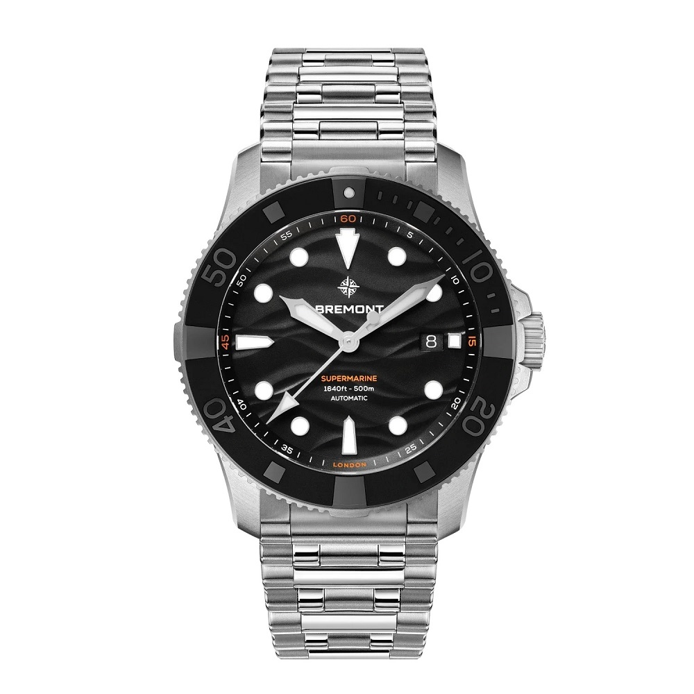 The Supermarine 500m marks a bold new chapter in Bremont’s professional dive watch collection. Crafted in 904L stainless steel, the 43mm case features a slimmer, more ergonomic profile with enhanced crown and bezel guards for added durability. Designed to withstand the pressures of deep-sea diving, it boasts a 500-metre water resistance rating, a helium escape valve, and a textured black ceramic uni-directional bezel.