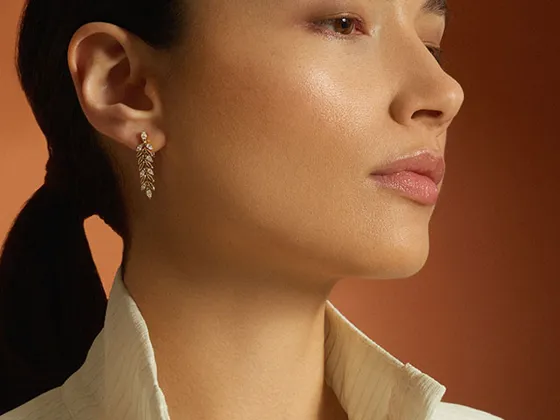 Japanese jeweller and pearl specialist Mikimoto has pieces influenced by clover, leaves and olives including a pair of 18ct White Gold Akoya Pearl and Diamond Clover Earrings, with a sparkling diamond set flower and a rich single Akoya pearl suspended below. Or a ring from the Italian-designed Primavera range uses the four petals of a flower with an 18ct white gold open flower style cluster ring, featuring a centre rubover set round brilliant cut diamond with 32 smaller round brilliant cut diamonds. Another celebration of nature is an 18ct white gold crossover ring – this time from the Insetti collection – and featuring 23 round brilliant cut diamonds (the end one being a marquise cut) and a butterfly at the other end, with claw set sapphire wings (oval cut and pear cut).
