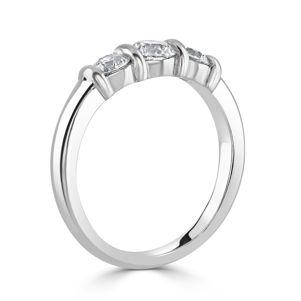 Introducing our elegant Platinum three diamond bar set ring, a stunning piece that combines classic sophistication with modern design. This exquisite ring showcases three round brilliant cut diamonds, meticulously bar-set to highlight their individual brilliance and collective sparkle, with a total diamond weight of 0.78 carats. Crafted from premium platinum, this ring features a sleek and durable setting that enhances the natural beauty of the diamonds, making it an ideal choice for those seeking a blend of contemporary style and timeless elegance. Perfect for engagements, anniversaries, or as a luxurious gift, this diamond ring is designed to be a timeless addition to any fine jewellery collection.
