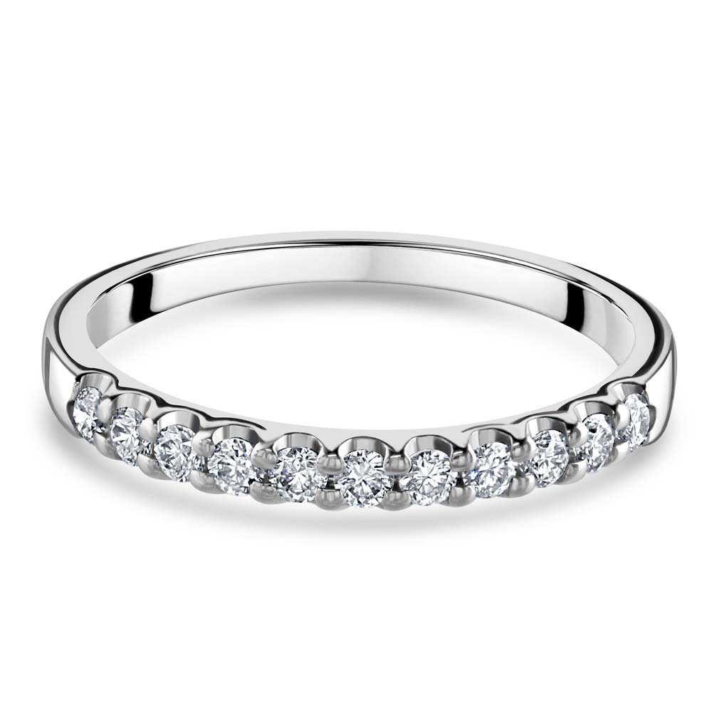 Elevate your elegance with our platinum straight-edged half eternity ring, meticulously crafted and set with eleven stunning round brilliant cut diamonds. This exquisite ring is 40% diamond set, offering a perfect blend of subtlety and sparkle that enhances any jewellery collection. Featuring a total diamond weight of 0.25 carats, each of the eleven diamonds is expertly placed to maximize brilliance and radiance. The straight-edged design adds a modern touch, ensuring a sleek and sophisticated look that pairs beautifully with both casual and formal attire. Crafted from premium platinum, this half eternity ring combines timeless beauty with exceptional durability. The luxurious platinum band provides a striking contrast to the dazzling diamonds, making this ring an ideal choice for anniversaries, milestones, or as a symbol of your enduring love.