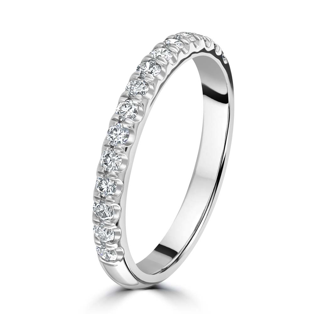 Discover the timeless elegance of our platinum half eternity ring, featuring 15 stunning round brilliant cut diamonds set in a sophisticated split four-claw setting. This exquisite ring is designed on a softened court band, ensuring both comfort and style. With a total diamond weight of 0.33 carats, each diamond is carefully selected and meticulously set to maximize brilliance and sparkle. The split four-claw setting provides a secure and elegant framework, allowing each diamond to shine brilliantly while maintaining a refined and luxurious appearance. Crafted from premium platinum, this half eternity ring combines lasting durability with unparalleled beauty. The softened court band offers a comfortable fit, making it perfect for daily wear or special occasions. Whether celebrating an anniversary, milestone, or simply adding a touch of sophistication to your jewellery collection, this platinum half eternity ring is a true symbol of enduring love and refined elegance.