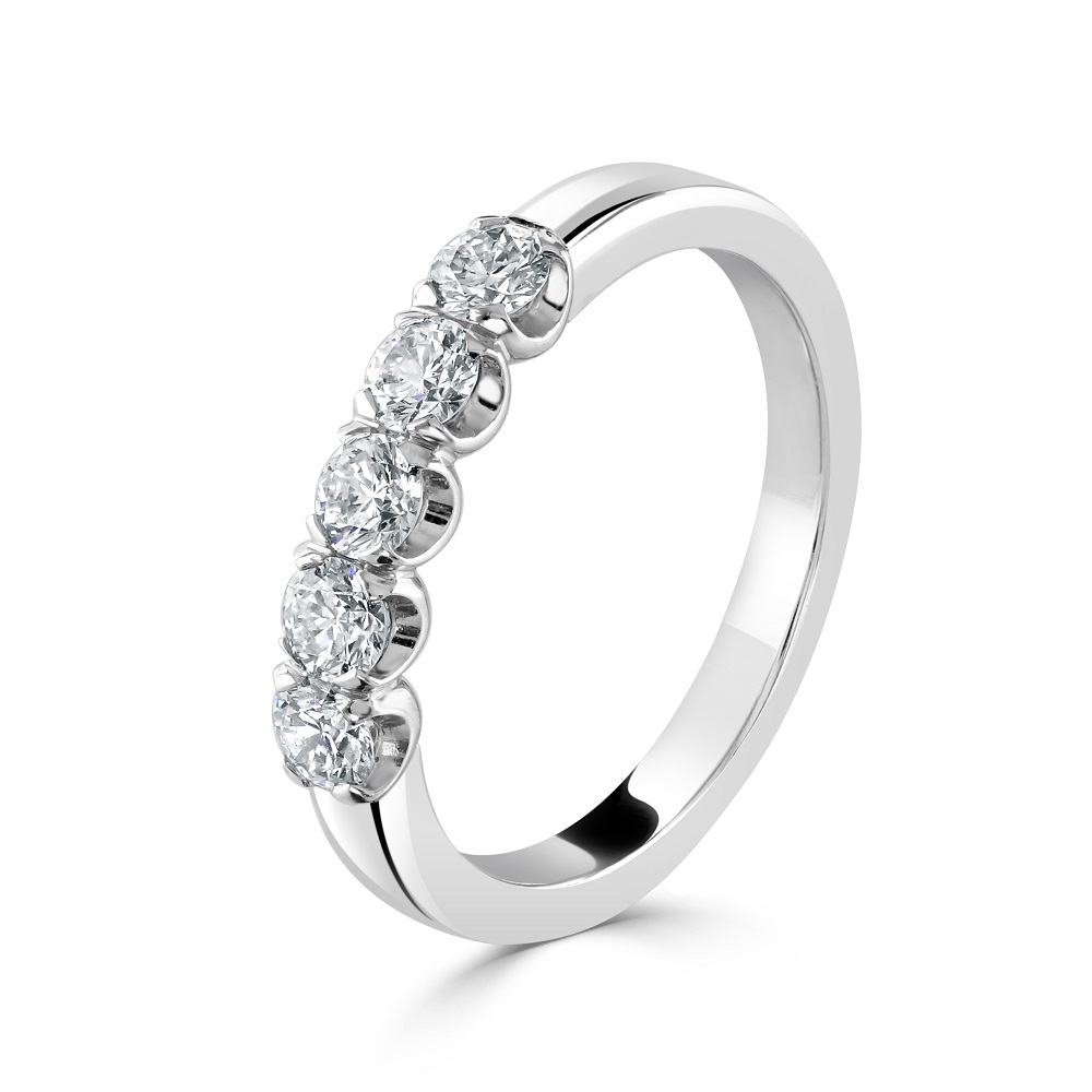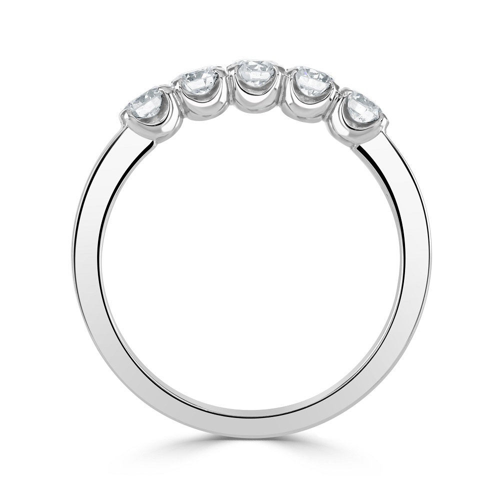 Discover the exquisite beauty of our platinum ring, an epitome of classic elegance and timeless design. This luxurious ring features four claw-set round brilliant cut diamonds, meticulously arranged to showcase their collective sparkle and brilliance, with a total diamond weight of 0.64 carats. Crafted in premium platinum, known for its durability and sleek finish, this ring is designed to highlight the natural beauty of each diamond, creating a stunning visual display that captivates from every angle. Perfect for celebrating life's significant milestones, this five-diamond ring is an ideal choice for anyone seeking a piece that combines sophisticated allure with lasting style.