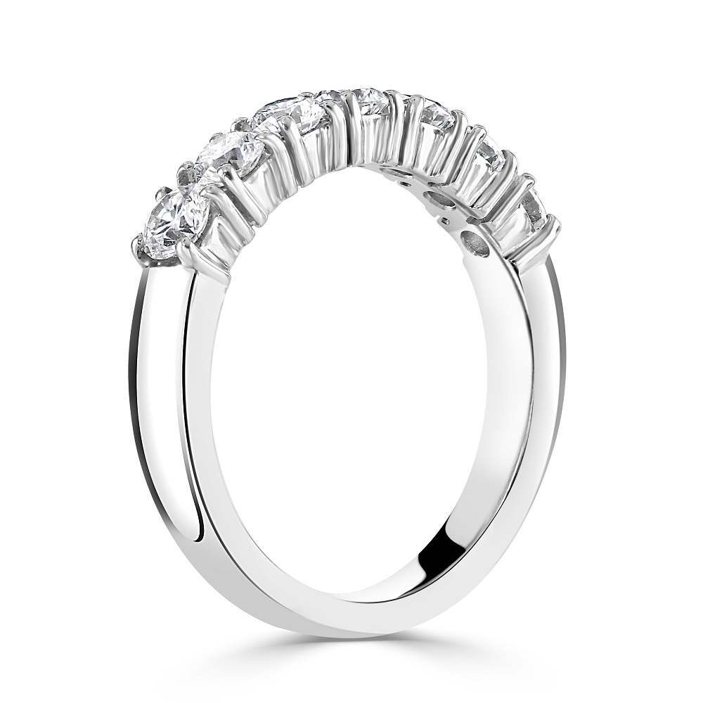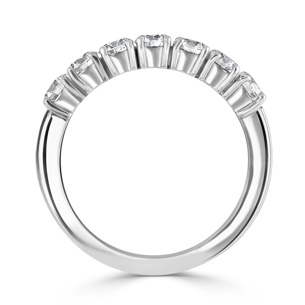 Enhance your fine jewellery collection with our platinum eternity ring, a symbol of everlasting love and elegance. This luxurious ring features seven round brilliant cut diamonds, collectively weighing 1.03 carats, each meticulously set in a four-claw arrangement that maximizes their visibility and brilliance. Crafted from premium platinum, known for its durability and hypoallergenic properties, this ring combines timeless style with exceptional strength. Ideal for celebrating significant anniversaries or as a sophisticated wedding band, this half eternity ring promises enduring beauty and an everlasting sparkle that complements any ensemble.