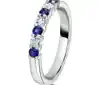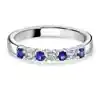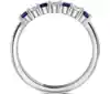 An elegant platinum eternity ring, a symbol of enduring love and commitment. This luxurious ring features an alternating pattern of four vivid sapphires and three sparkling round brilliant cut diamonds, all securely held in a classic four-claw setting. The sapphires, known for their deep blue hue and total weight of 0.27 carats, offer a striking contrast against the brilliance of the diamonds, which collectively weigh 0.16 carats. This combination of gemstones not only provides a captivating visual appeal but also symbolizes strength and clarity, making this ring an ideal choice for anniversaries, engagements, or as a meaningful gift. Crafted from the finest platinum, known for its durability and hypoallergenic properties, this ring is designed to last a lifetime. The timeless design and exquisite craftsmanship ensure that it will be a cherished addition to any jewellery collection, perfect for everyday elegance or special occasions.