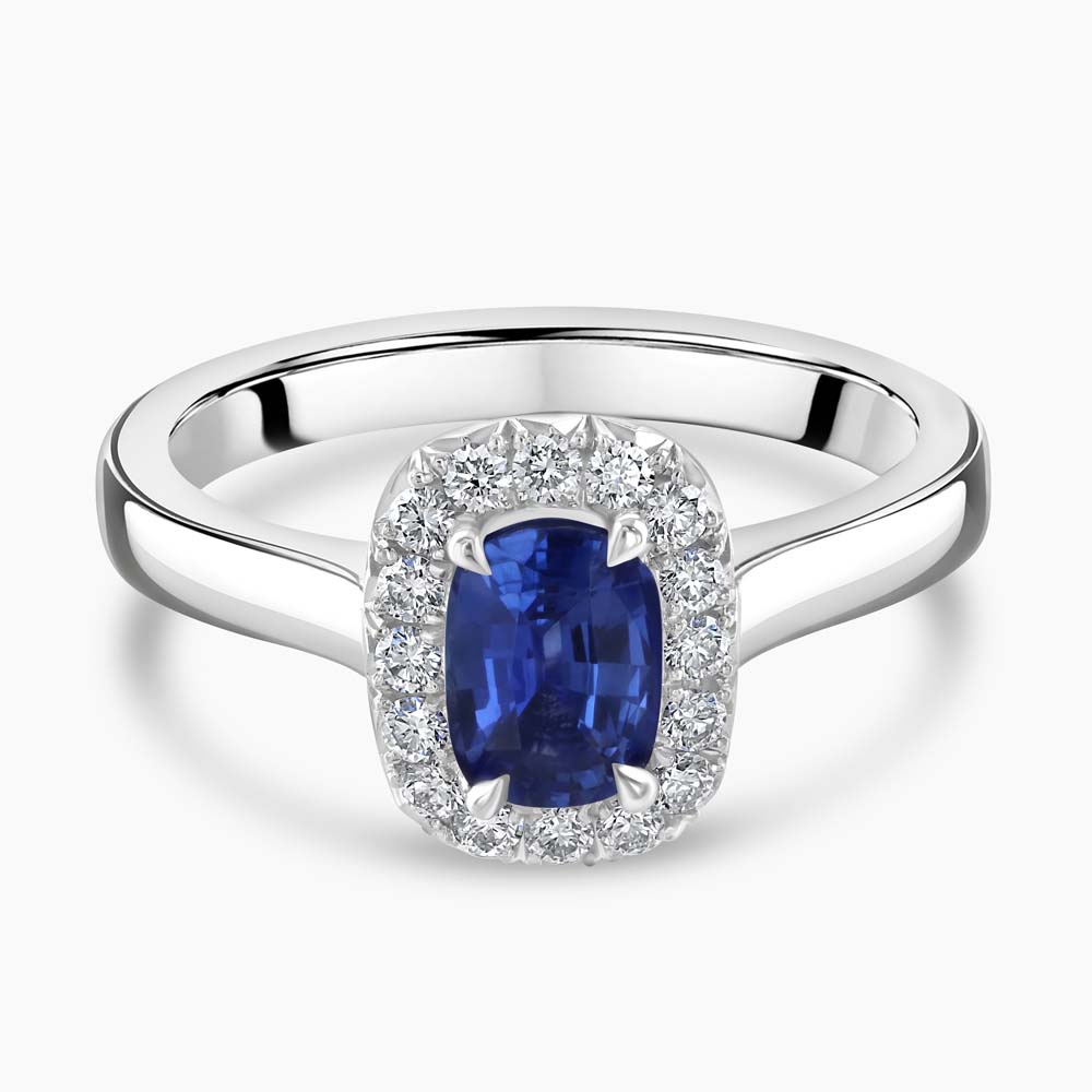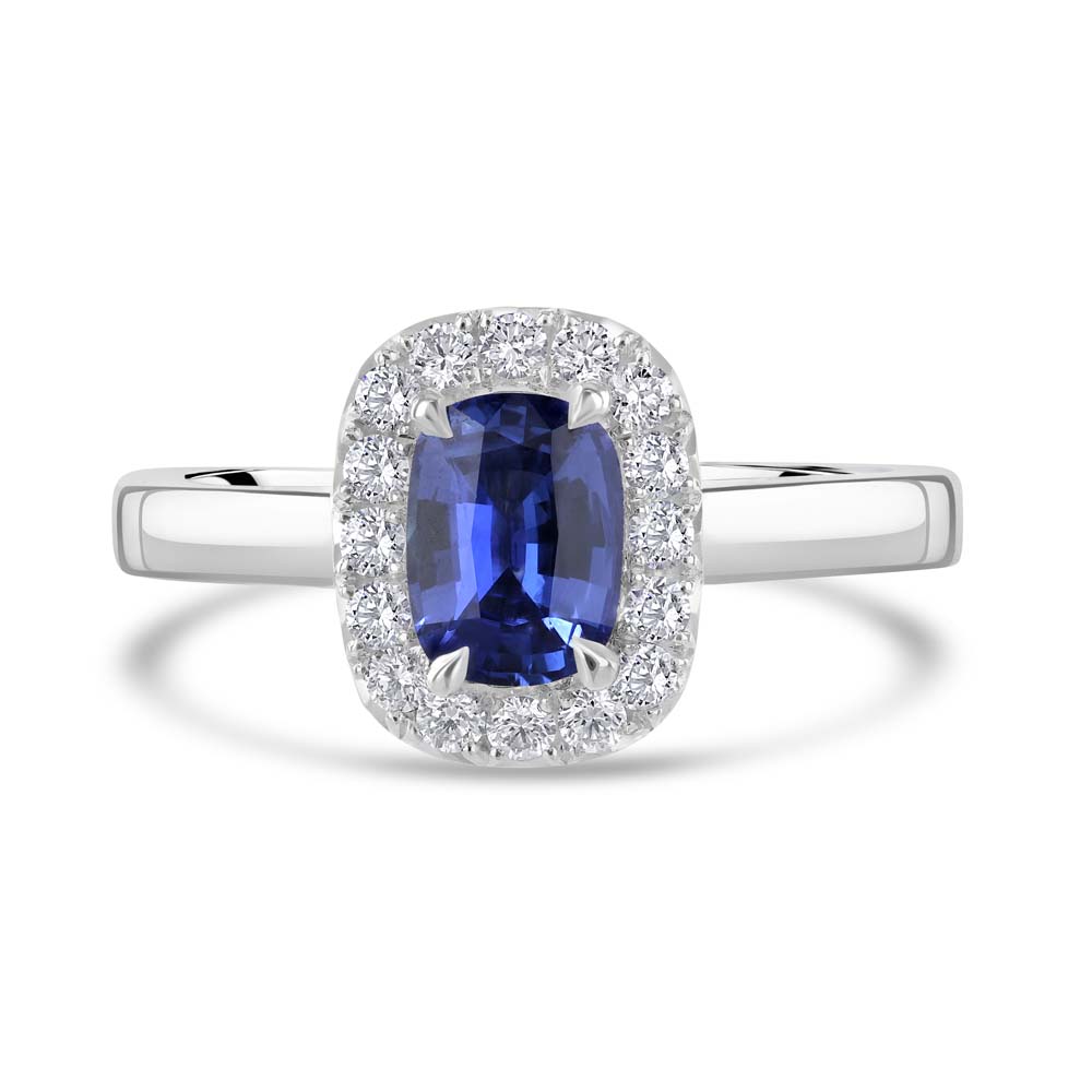 A graceful celebration of classic design and refined craftsmanship, this stunning cluster ring is centred around a richly hued 0.85 carat cushion-cut sapphire, held in a secure four-claw setting. The sapphire’s velvety depth is beautifully accentuated by a radiant halo of 16 round brilliant-cut diamonds, with a total weight of 0.22 carats, each meticulously set to enhance the ring’s brilliance and symmetry. Crafted in enduring platinum, this piece exudes timeless elegance and sophistication, perfect as a statement of love, a milestone gift, or a treasured addition to any fine jewellery collection.