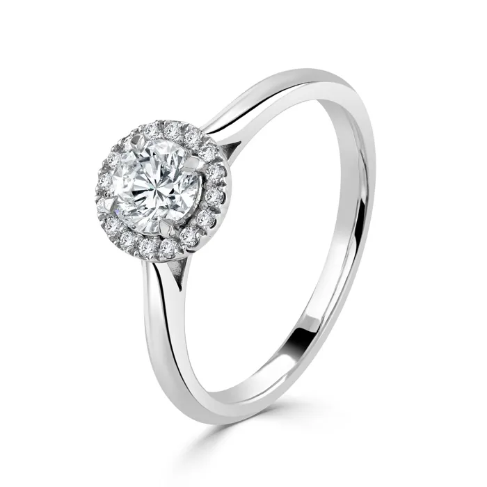 Unveil the sheer elegance of our platinum cluster ring, a dazzling masterpiece that exudes timeless sophistication. At the heart of this exquisite design lies a GIA-certified 0.50ct round brilliant cut diamond, securely held by a four-claw setting to showcase its striking brilliance and clarity. This central diamond, graded G for colour and SI2 for clarity, is brilliantly complemented by a halo of meticulously set diamonds, adding an additional weight of 0.08 carats to the ensemble. Crafted from premium platinum, known for its durability and sleek finish, this ring is perfect for engagements, special celebrations, or as a luxurious gift. Embrace this symbol of love and commitment, designed to captivate and charm for generations.