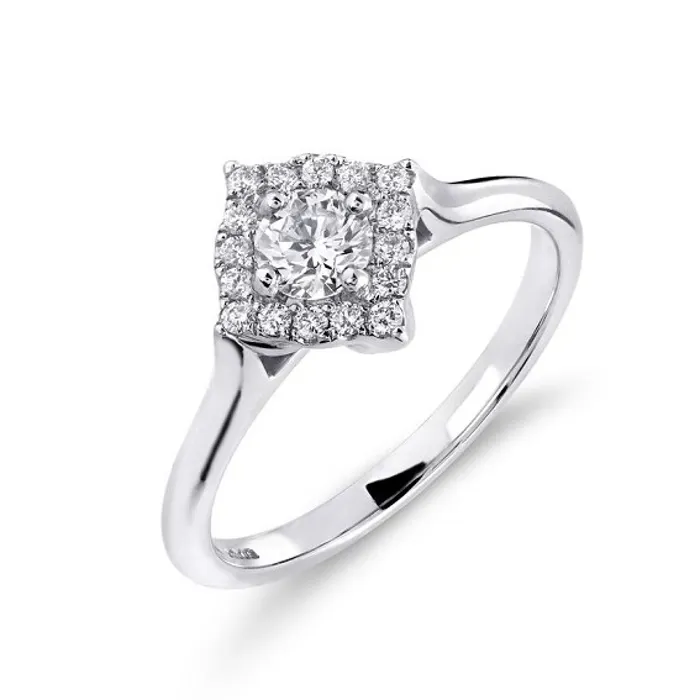 Discover the sophisticated allure of our platinum cluster ring, meticulously designed to showcase timeless elegance and exceptional craftsmanship. At the heart of this exquisite ring is a 0.30ct round brilliant cut diamond, securely held in a four-claw setting, radiating superb brilliance. This central gem is encircled by 16 micro-claw set round brilliant cut diamonds, collectively weighing 0.13ct, arranged in a striking square-shaped cluster. Each diamond has been chosen for its sparkle and clarity, enhancing the overall allure of the piece. Crafted from high-quality platinum, this ring is both durable and stylish, making it an ideal choice for engagements, special anniversaries, or as a luxurious gift. Embrace this stunning cluster ring as a symbol of love and elegance.