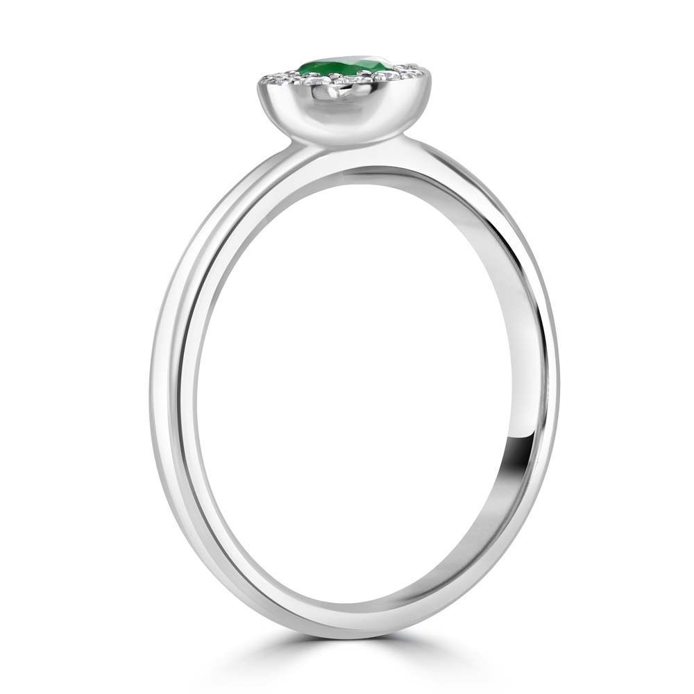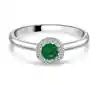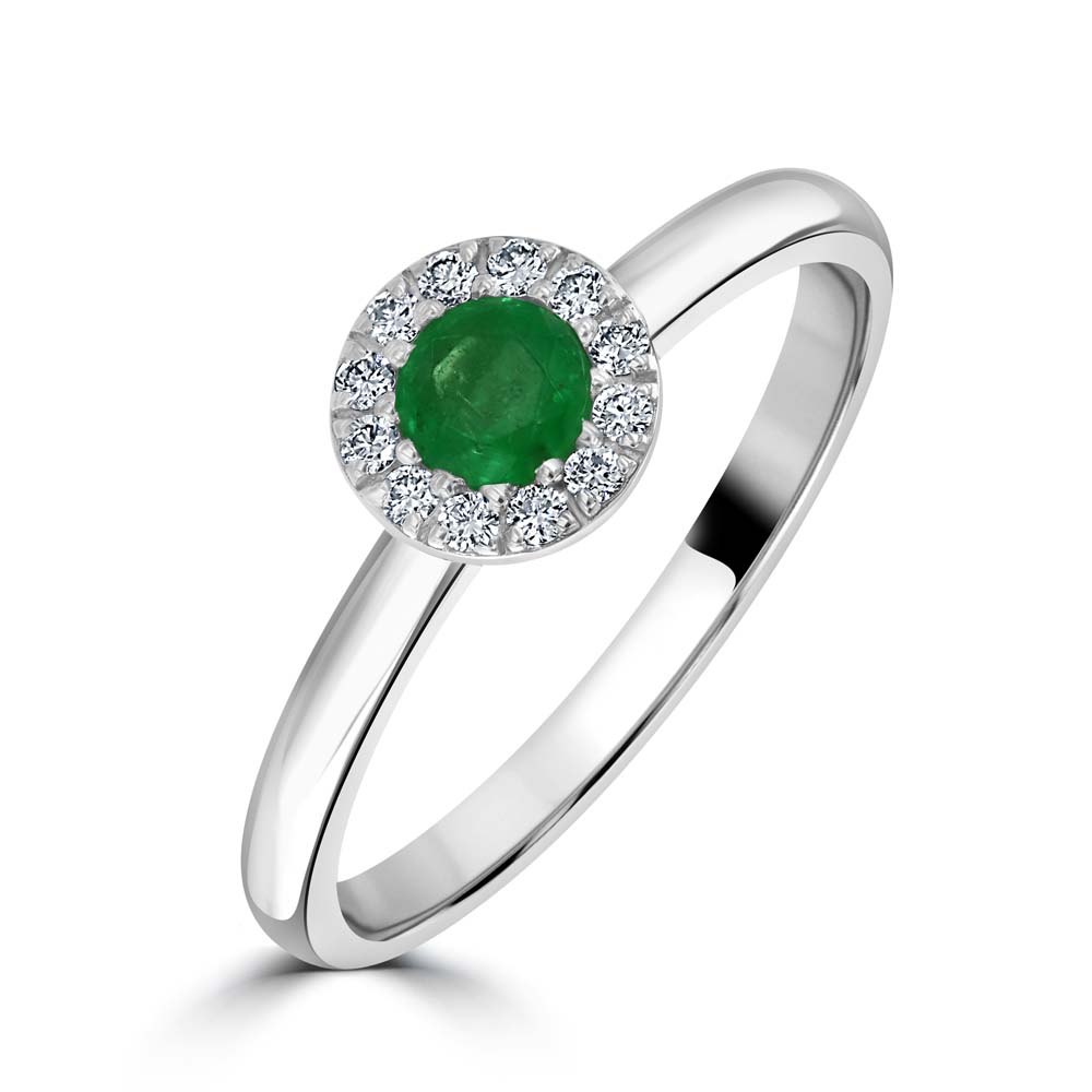 An exquisite platinum halo ring, featuring a mesmerizing centre round emerald encased in a halo of twelve meticulously selected round brilliant cut diamonds. This sophisticated design combines the timeless elegance of platinum with the captivating allure of the emerald, a gemstone celebrated for its rich, vibrant green hues and symbolizing renewal and growth. Each diamond is chosen for its exceptional sparkle, enhancing the emerald's natural beauty, and creating a radiant display of light. The halo setting not only accentuates the gemstone's brilliance but also adds to the ring's overall splendour, making it a perfect choice for those seeking a piece that's both luxurious and meaningful.