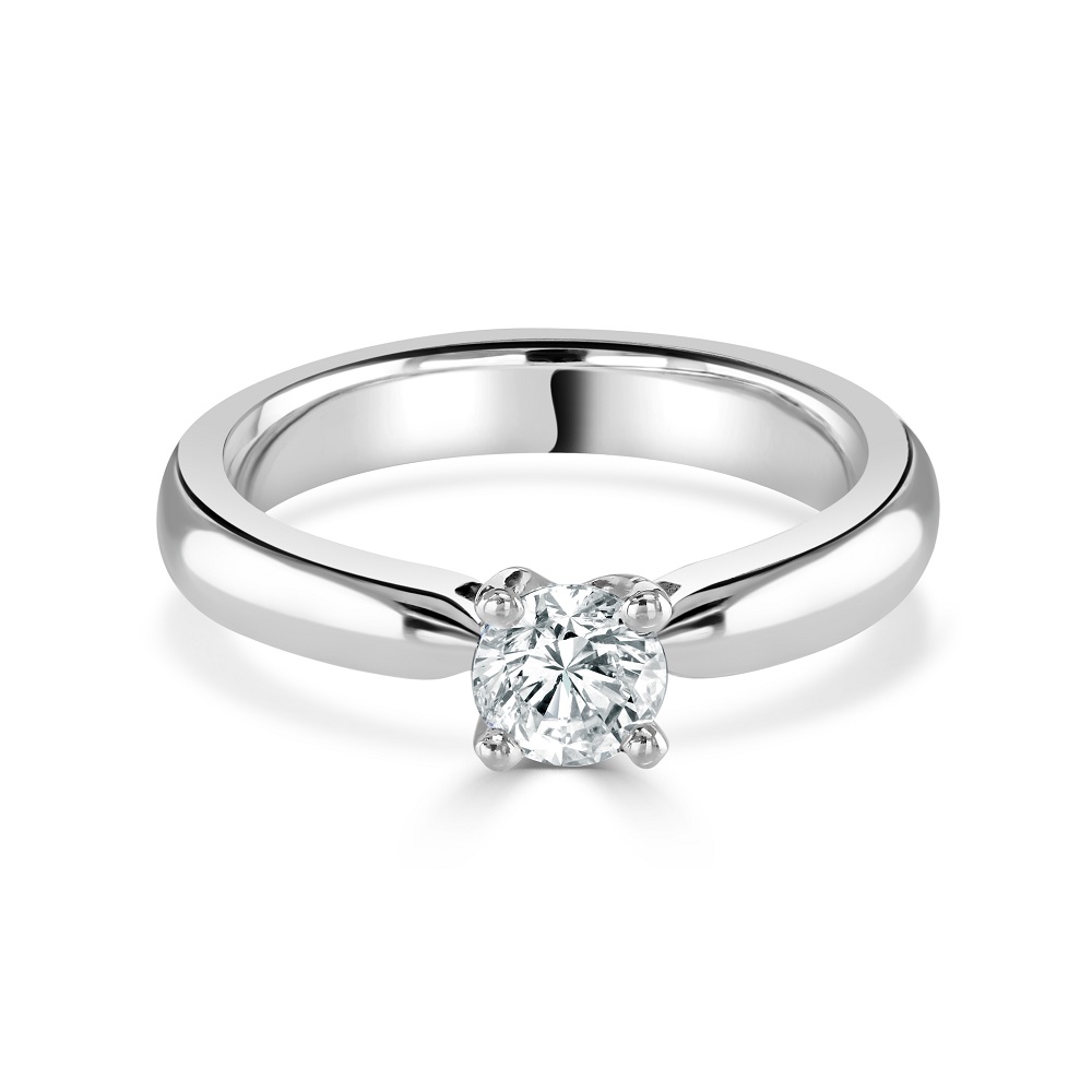 Discover the refined elegance of our platinum solitaire diamond ring, a timeless piece that epitomizes classic sophistication. This exquisite ring showcases a stunning 0.45ct round brilliant cut diamond, prominently displayed in a secure four-claw setting that highlights its luminous brilliance. The diamond is certified with a colour grade of G and a clarity of VS2, ensuring a sparkling and nearly flawless appearance. Crafted in a sleek platinum mount, this ring offers a durable and sophisticated setting that enhances the natural beauty of the diamond. Perfect for engagements, special anniversaries, or as a luxurious gift, this solitaire diamond ring is designed to be a cherished addition to any fine jewellery collection, symbolizing love and commitment in its purest form.