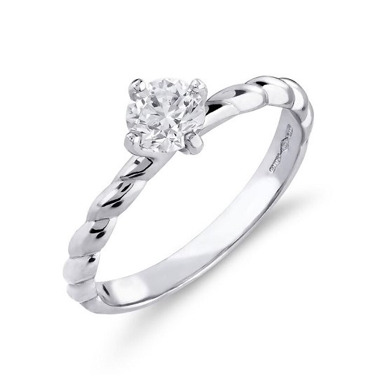 Discover the refined elegance of our platinum solitaire ring, a testament to classic design and modern craftsmanship. This exquisite piece features a GIA-certified round brilliant cut diamond, weighing 0.50 carats, nestled securely in a four-claw setting. The diamond is graded F in colour and SI1 in clarity, ensuring a bright white appearance with eye-catching sparkle. The ring's distinctive feature is its elegantly twisted shank, which adds a contemporary twist to the traditional solitaire setting, enhancing the diamond’s visual impact. Crafted from high-quality platinum, known for its durability and sleek finish, this ring is designed to last a lifetime. Perfect for engagements, anniversaries, or as a luxurious gift, this ring symbolizes a timeless commitment and is sure to be cherished for generations to come