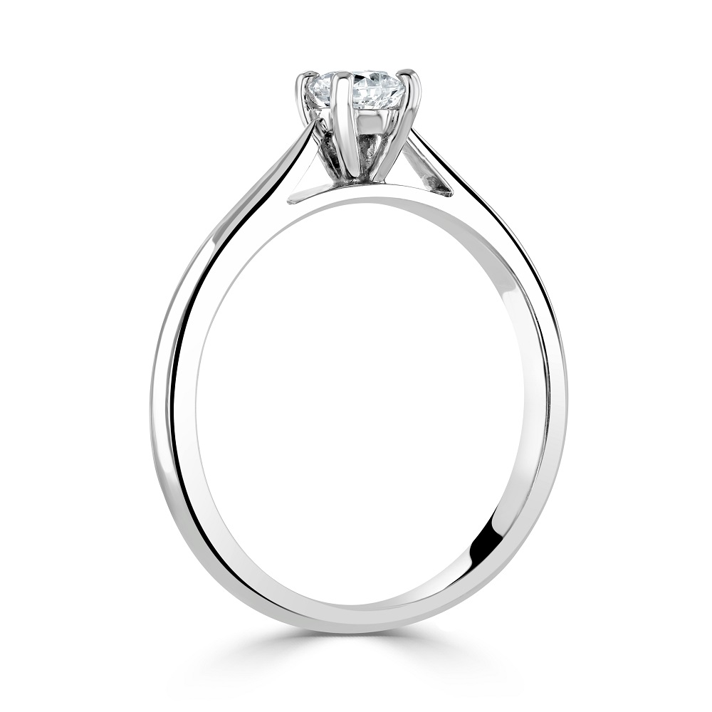 Our elegant platinum solitaire diamond ring is a masterpiece of fine jewellery design. This exquisite ring is expertly crafted from premium platinum, known for its strength and purity, showcasing a timeless style that complements any occasion.