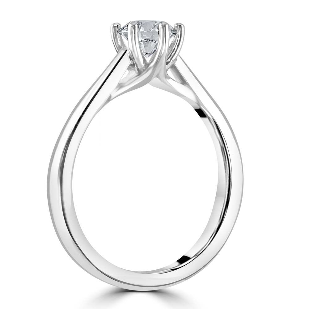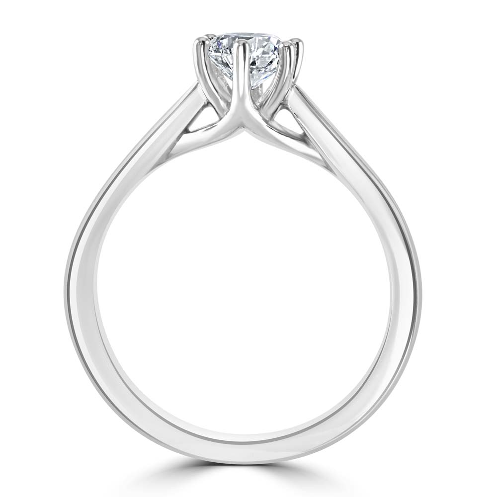 Experience timeless elegance with this exquisite platinum solitaire ring, meticulously crafted to showcase a round brilliant-cut diamond in a classic six-claw setting. The diamond, weighing 0.60 carats, radiates exceptional brilliance and fire, perfectly complemented by its superior F colour and VS1 clarity—a mark of true rarity and refinement. Designed for those who appreciate understated luxury, this piece combines enduring strength with graceful sophistication. The platinum band offers a sleek, polished finish, ensuring both durability and a luminous backdrop for the diamond’s sparkle. Ideal for engagements or as a statement of everlasting love, this ring is more than jewellery—it’s a legacy of craftsmanship and beauty.