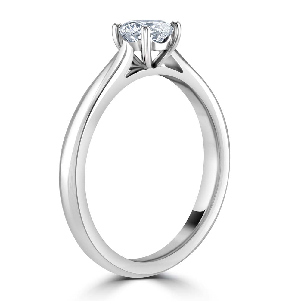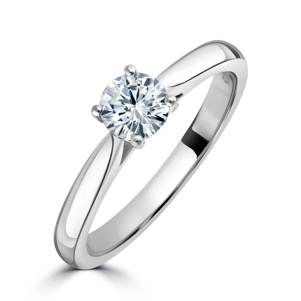 A platinum solitaire ring, the epitome of elegance, a symbol of timeless sophistication and unparalleled beauty. This exquisite piece features a stunning four claw-set round brilliant cut diamond, weighing 0.70ct, at its heart. Selected for its exceptional colour and clarity, graded E/SI1, this diamond radiates with unmatched brilliance and purity. The platinum setting, known for its strength and durability, enhances the diamond's natural sparkle, creating a mesmerizing display of light. Perfect for those special moments that call for a gesture of everlasting love, this solitaire ring embodies the ultimate expression of commitment and elegance. Whether as an engagement ring or a significant gift, this piece is designed to be cherished for a lifetime, symbolizing a bond that grows ever stronger.