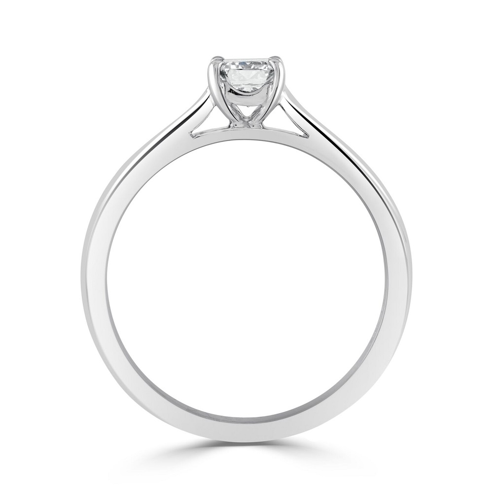 Introducing our stunning platinum solitaire ring, featuring a GIA-certified 0.63ct emerald cut diamond, exquisitely set in a four-claw arrangement. This sophisticated design highlights the diamond's exceptional clarity (VS1) and colour (F), ensuring it sparkles with unparalleled brilliance. The tapered shank of the ring enhances the elegant geometry of the emerald cut, creating a sleek and contemporary silhouette. Crafted from high-quality platinum, known for its durability and lustre, this ring is perfect for those who appreciate minimalist elegance with a focus on exceptional gem quality. Ideal for engagements, anniversaries, or as a special gift, this single stone ring is a timeless choice that exemplifies luxury and refined taste.