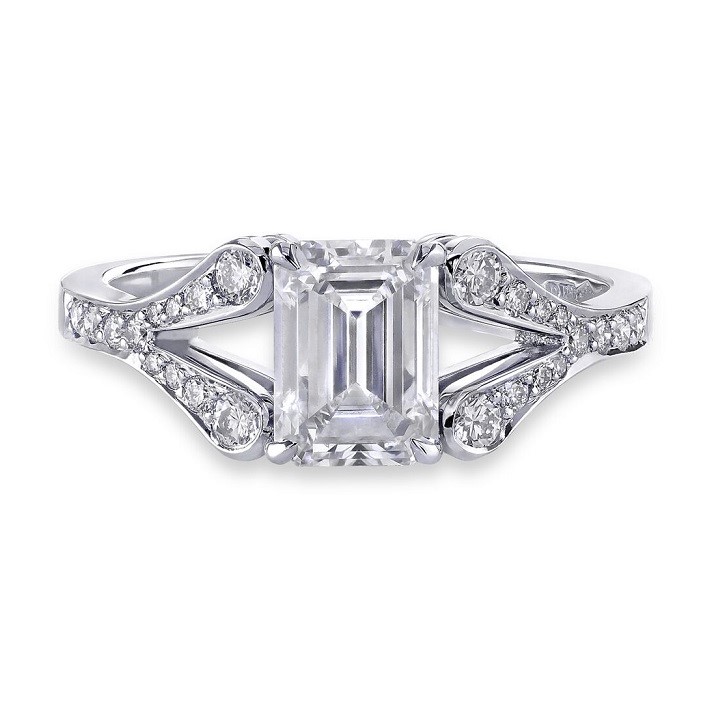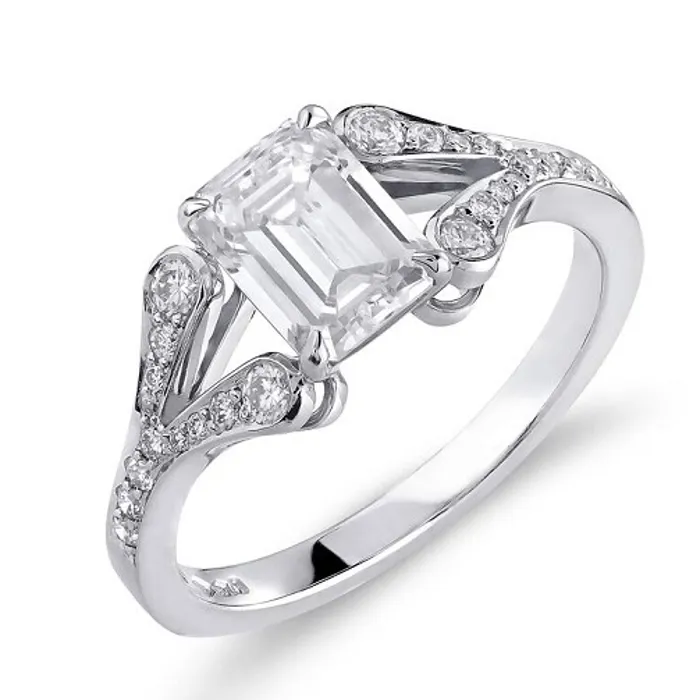 Elevate your elegance with our exquisite Platinum Ring, featuring a mesmerizing emerald cut centre diamond, weighing a significant 1.59ct. This centrepiece is flawlessly complemented by diamond-set split shoulders, adding an additional layer of sophistication and sparkle. Each diamond has been carefully selected for its exceptional quality, with the centre stone boasting an E colour and SI1 clarity, certified by the Gemmological Institute of America (GIA), ensuring both brilliance and transparency. The diamond shoulders contribute an additional total weight of 0.54ct, perfectly balancing the ring's aesthetic with their radiant light. This platinum ring embodies luxury and timeless design, making it an ideal choice for those seeking a statement piece that celebrates love and commitment. Whether you're marking a special occasion or simply indulging in the beauty of fine jewellery, this ring with its distinguished emerald cut diamond and sparkling shoulders offers unmatched elegance and sophistication.Top of Form