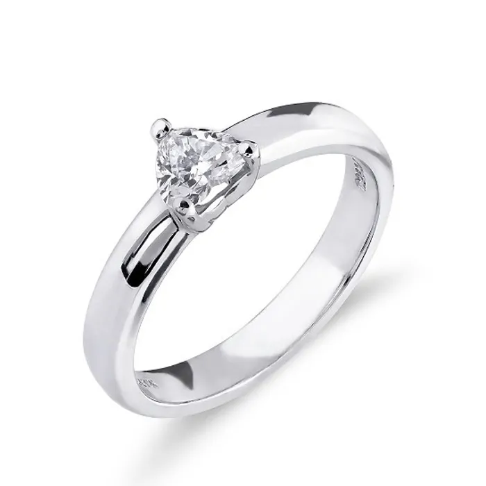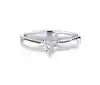 The ring is crafted entirely in sleek platinum, including the slender band that complements the diamond's shape and brilliance without overpowering it. The choice of platinum enhances the ring's durability and offers a bright, silvery sheen that enhances the gemstone's visual impact.