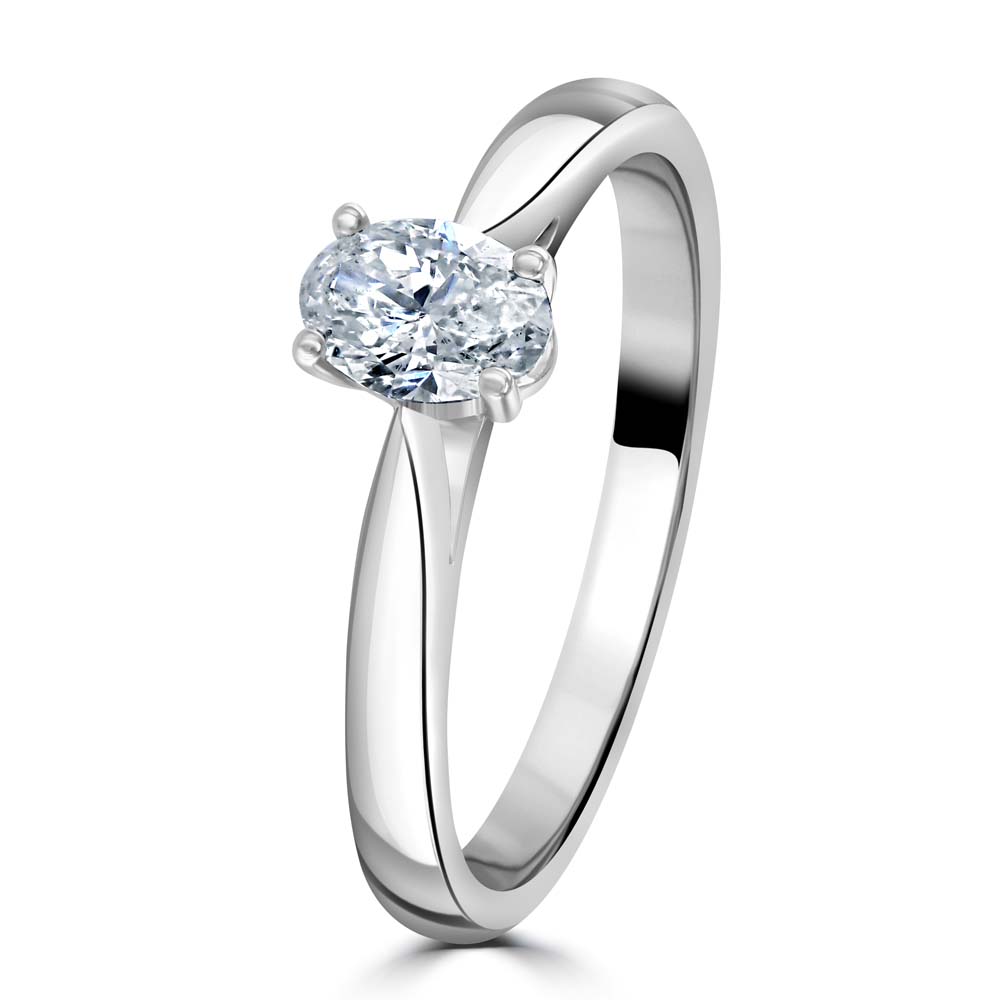 Discover the epitome of elegance with this stunning platinum solitaire ring, featuring a masterfully set brilliant oval cut diamond. The diamond is securely held in place by four under-wire claws, ensuring both its safety and prominence. The ring's design gracefully tapers towards the shank, highlighting the sleek and sophisticated silhouette of the platinum band. This exquisite piece of jewellery is crafted for those who seek a blend of classic style and modern refinement. This solitaire ring is a timeless treasure that symbolizes enduring love and commitment.
