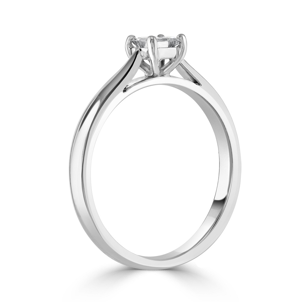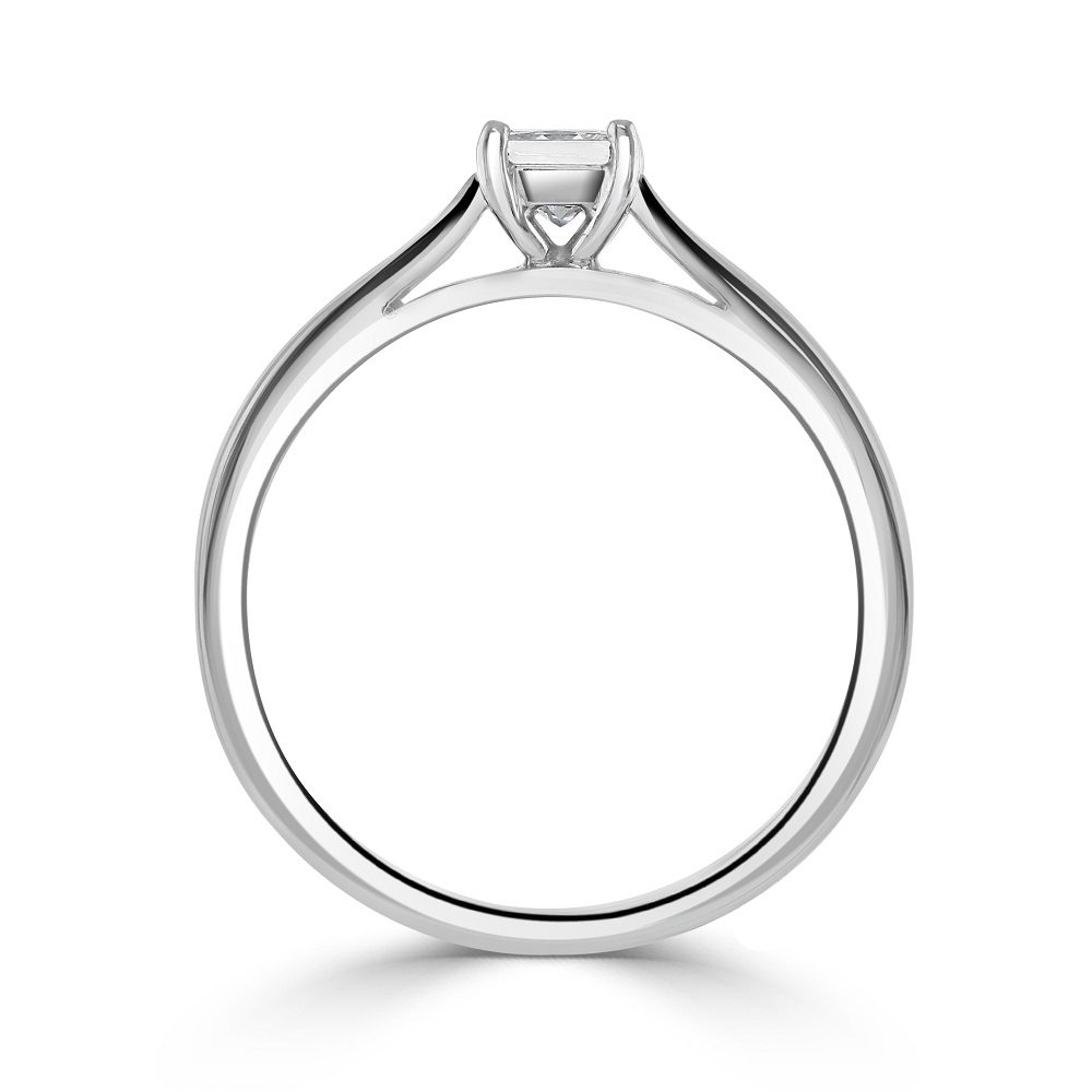 An elegant platinum solitaire ring, featuring a stunning four-claw set princess cut diamond. This exquisite ring boasts a 0.30ct diamond that radiates unparalleled brilliance and clarity. The diamond is GIA certified, ensuring top-tier quality with a colour grade of D and clarity of VS2, making it nearly flawless in its appearance. Crafted from premium platinum, this ring offers durability and a sleek, polished finish that enhances the diamond's natural beauty. The classic solitaire design with a modern princess cut makes this ring an ideal choice for engagements, special occasions, or as a luxurious gift. Embrace the sophistication and sparkle of this solitaire ring, a symbol of pure elegance that will last a lifetime.
