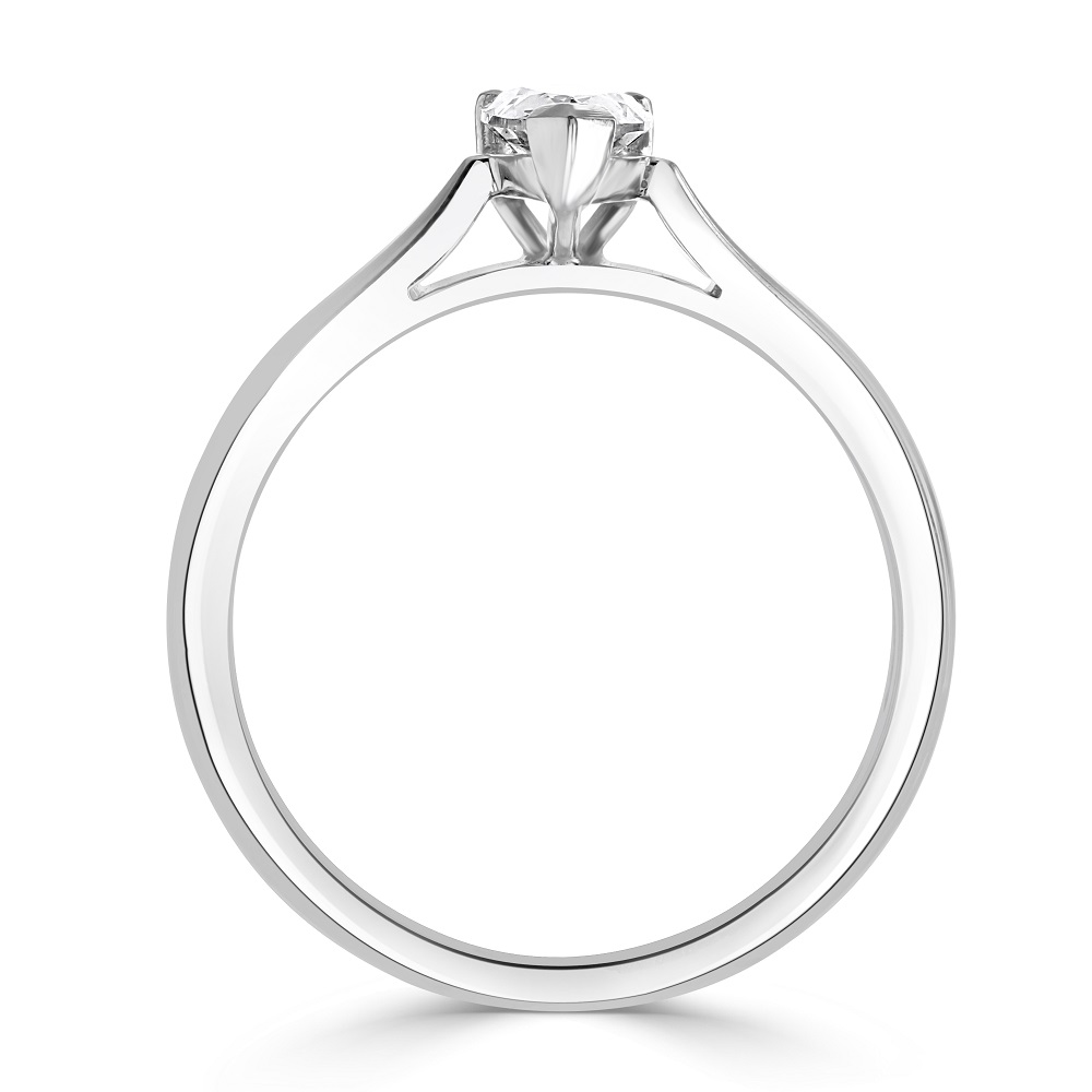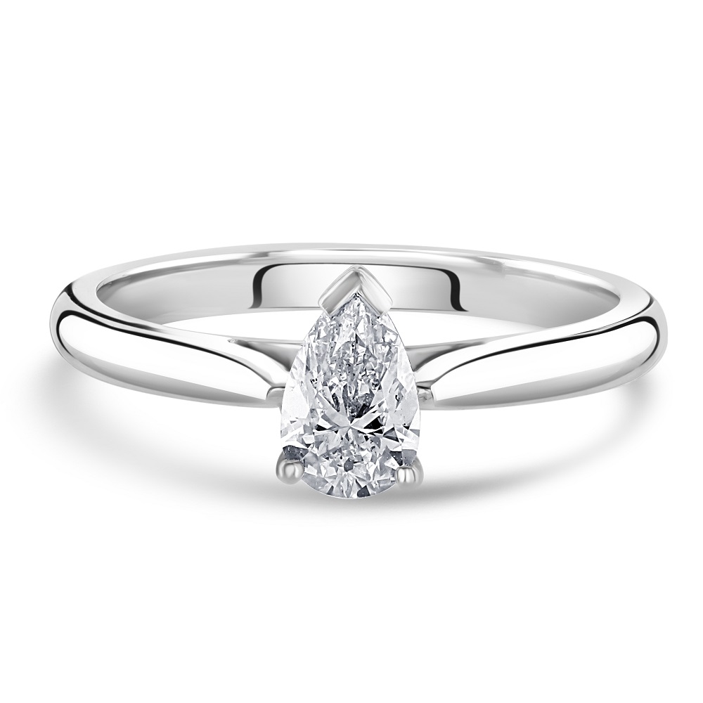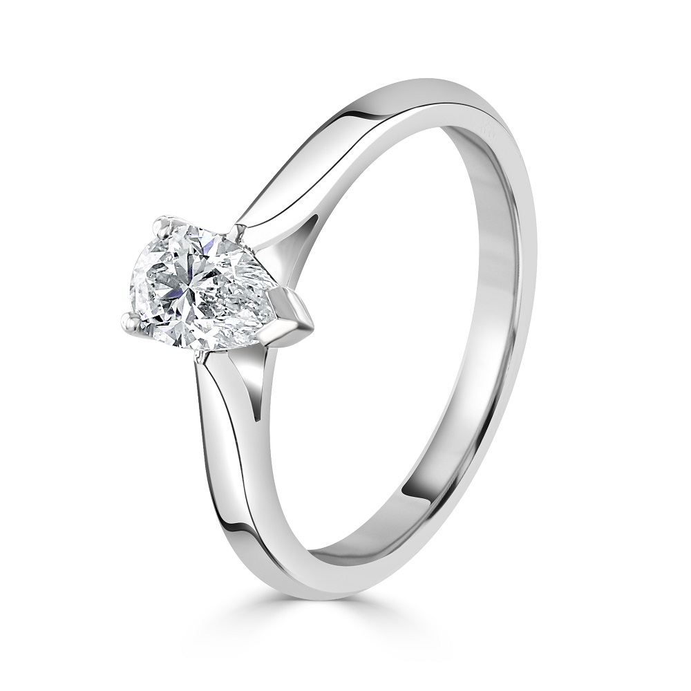 Embrace timeless elegance with our platinum solitaire ring, featuring a stunning 0.52ct pear cut diamond, exquisitely set in a three-claw design to enhance its unique shape and brilliant sparkle. This GIA-certified diamond, boasting an F colour and SI1 clarity, radiates exceptional purity and lustre. The sleek platinum band tapers gracefully towards the diamond, emphasizing its natural beauty and creating a refined, sophisticated silhouette. Perfect for engagements, special anniversaries, or as a significant gift, this solitaire ring symbolizes a commitment as enduring as its design. Add this piece to your collection to cherish a lifetime of luxury and elegance.