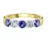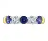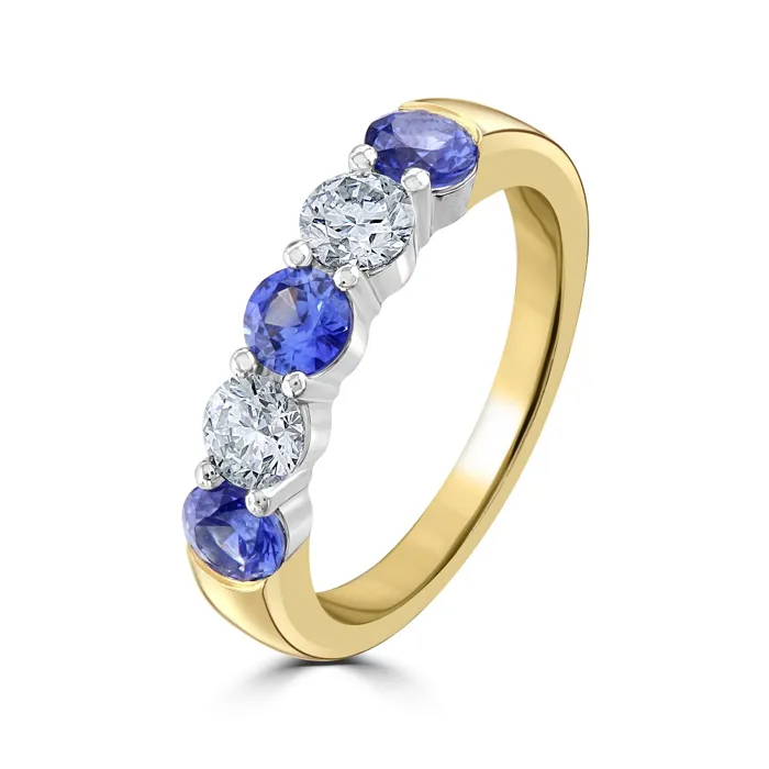 Experience the harmonious blend of luxury and elegance with our 18ct yellow gold five gemstone ring, featuring a distinguished platinum head. This exquisite ring showcases a captivating sequence of three round sapphires and two round brilliant cut diamonds, all expertly claw set with delicate rubover ends to enhance their beauty and brilliance. The alternating pattern of deep blue sapphires and luminous diamonds creates a stunning visual contrast, making this piece a true work of art.